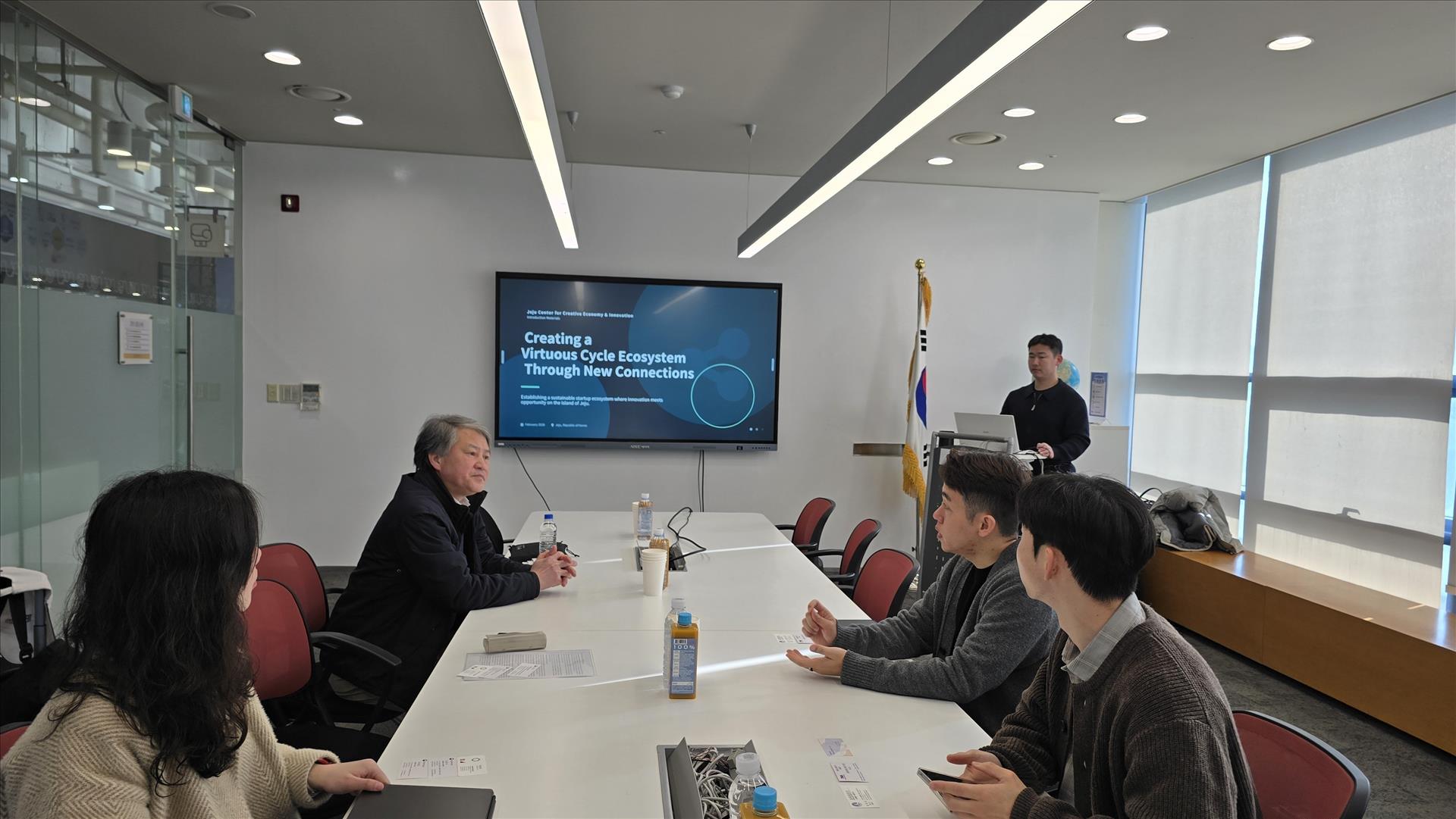 Đại diện Jeju Center for Creative Economy & Innovation (Jeju CCEI) giới thiệu hoạt động của Trung tâm. Ảnh: Đức Thắng - P/v TTXVN tại Hàn Quốc