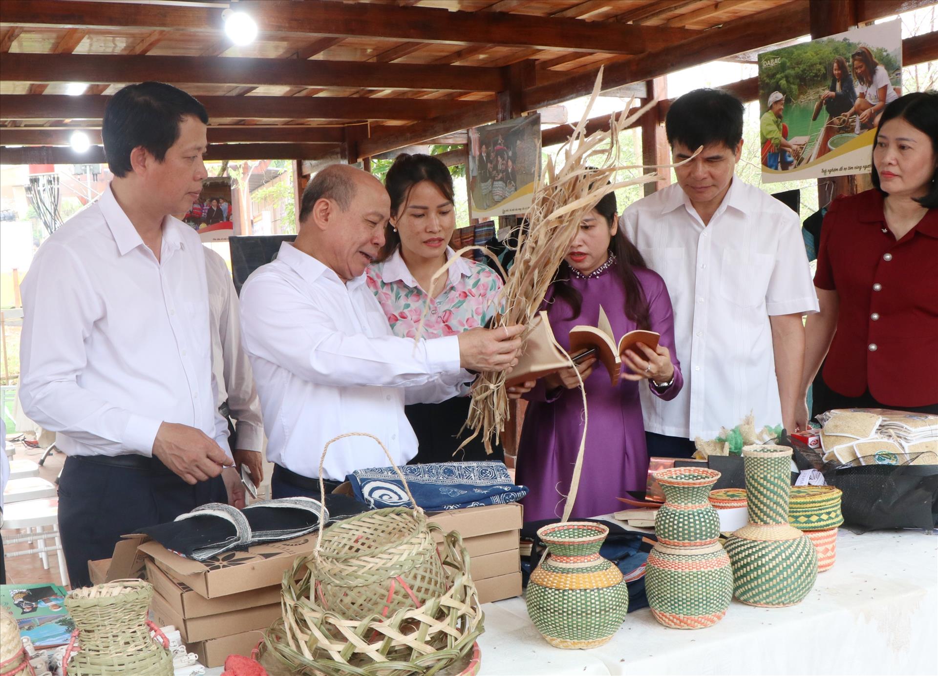 Các đại biểu tham quan gian trưng bày sản phẩm truyền thống. Ảnh: Thu Hương - TTXVN