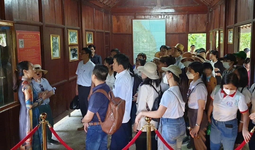 Những ngày đầu Xuân Bính Ngọ 2026, nhóm phóng viên TTXVN theo chân chị Hồ Thị Xinh, Phó Giám đốc Trung tâm cung ứng dịch vụ sự nghiệp công xã Trà Tân, người có nhiều năm trực tiếp quản lý Khu di tích lịch sử Trung Trung bộ - Nước Oa, ngược dòng thời gian để trở về thời kỳ kháng chiến... Từ Quốc lộ 40B rẽ vào con đường nhựa đi UBND xã Trà Tân, hàng loạt di tích được treo cờ Đảng, cờ Tổ quốc, cùng hoa lá mùa Xuân rực rỡ, mời gọi du khách ghé thăm.