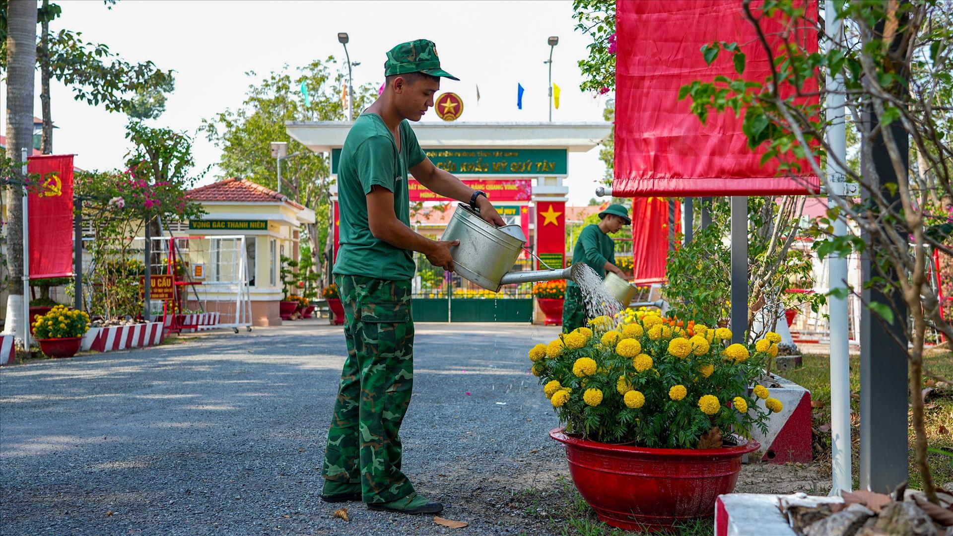 Ở mỗi đơn vị, không khí Xuân là những cành mai được anh em tự tay trang trí, mâm cơm tất niên giản dị nhưng ấm cúng. Sau giờ trực, các chiến sĩ quây quần hát cho nhau nghe, gửi lời chúc Tết qua điện thoại về gia đình. Khoảnh khắc ấy, đồn biên phòng trở thành mái nhà chung, nơi tình đồng đội bù đắp phần nào nỗi nhớ quê.