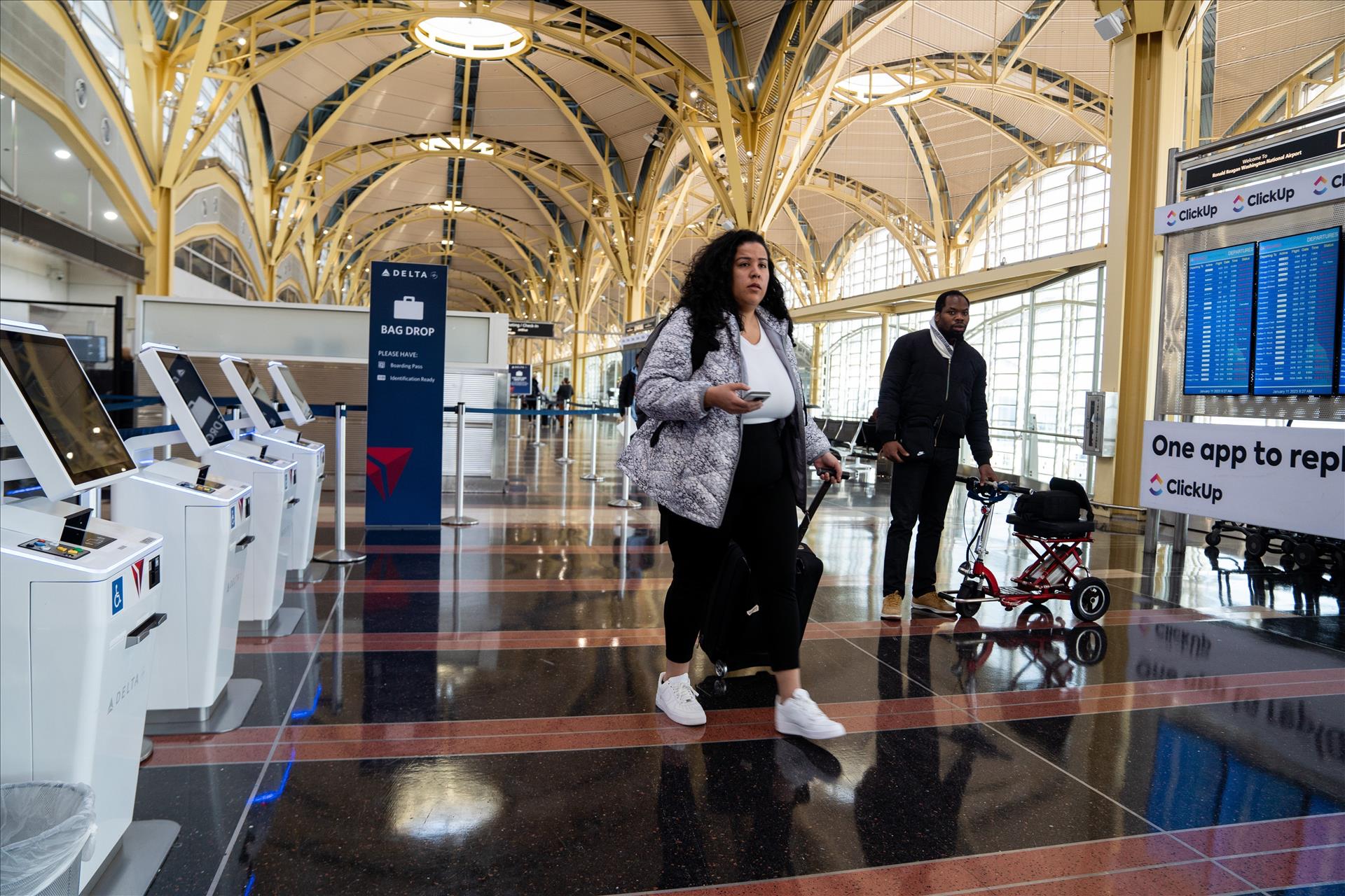 Hành khách tại sân bay quốc gia Ronald Reagan Washington ở Arlington, Virginia, Mỹ. Ảnh: THX/TTXVN