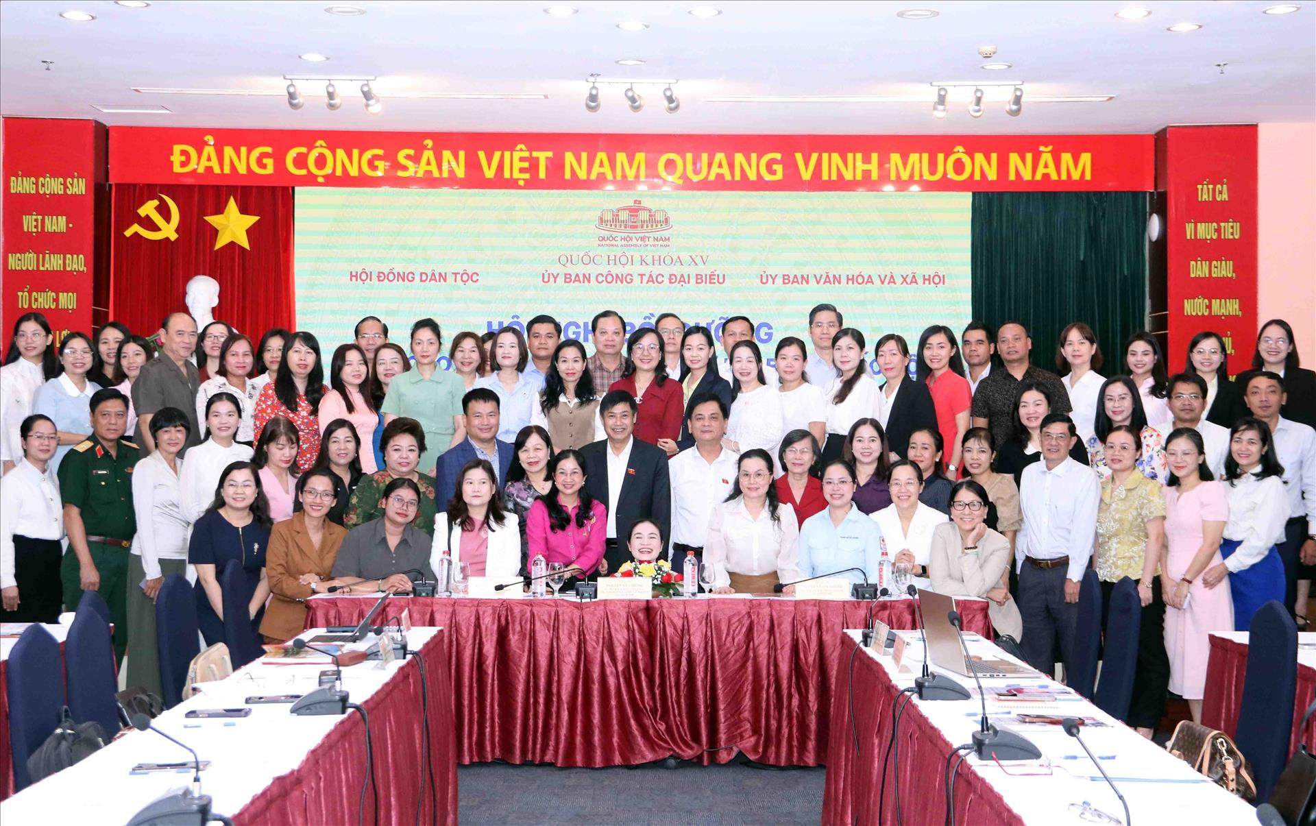 Ông Nguyễn Hữu Đông, Chủ nhiệm Ủy ban Công tác Đại biểu Quốc hội khóa XV; ông Nguyễn Lâm Thành, Phó Chủ tịch Hội đồng Dân tộc của Quốc hội; bà Nguyễn Thị Mai Hoa, Phó Chủ nhiệm Ủy ban Văn hóa và Xã hội Quốc hội khóa XV đồng chủ trì Hội nghị.