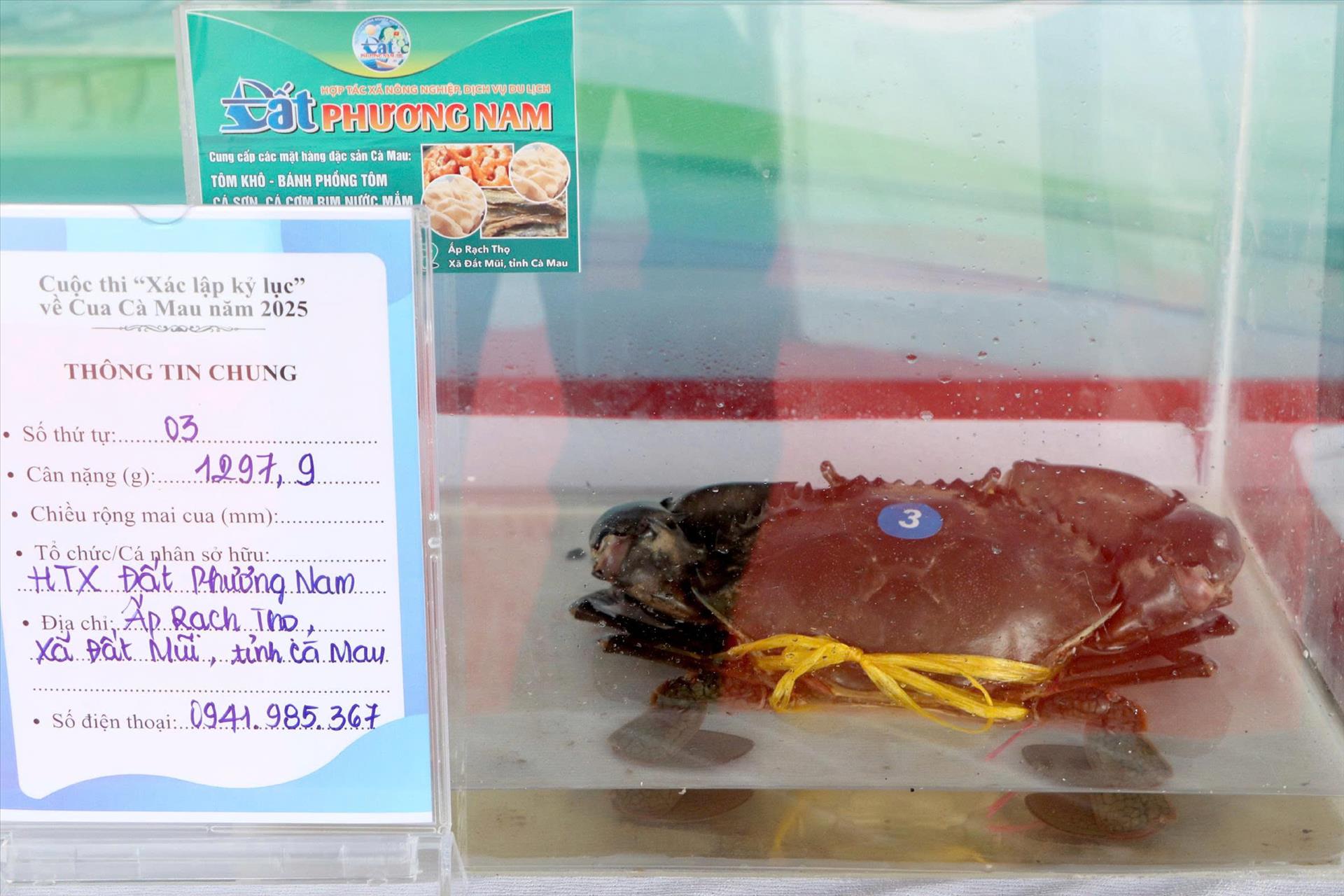 Con cua có cân nặng 1297,9 gam trong cuộc thi “Xác lập kỷ lục” về cua Cà Mau 2025. Ảnh: Tuấn Phi - TTXVN