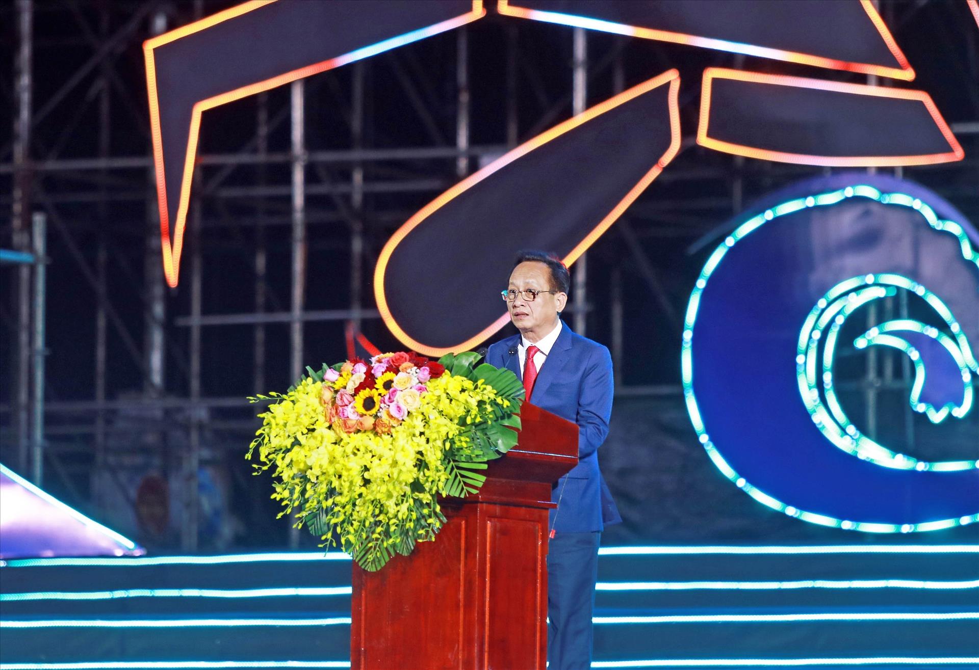 Đồng chí Phạm Văn Thiều, Phó Bí thư Tỉnh ủy, Chủ tịch Hội đồng nhân dân tỉnh, Trưởng Ban Chỉ đạo Ngày hội Cua Cà Mau lần thứ II năm 2025 phát biểu khai mạc Ngày hội. Ảnh: Huỳnh Anh - TTXVN