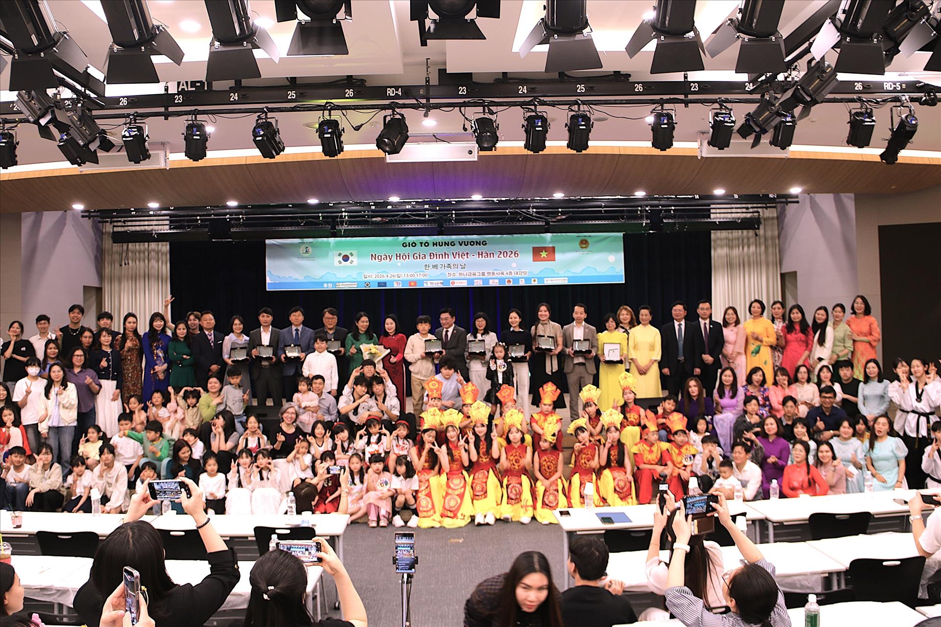 “Ngày hội Gia đình Việt – Hàn năm 2026”, một sự kiện ý nghĩa dành cho các gia đình đa văn hóa Việt – Hàn, đã được tổ chức tại Seoul ngày 26/4. Sự kiện do Hội liên hiệp phụ nữ Việt Nam tại Hàn Quốc chủ trì tổ chức với sự bảo trợ của Đại sứ quán Việt Nam, thu hút đông đảo các gia đình đa văn hóa Hàn - Việt tham dự.
