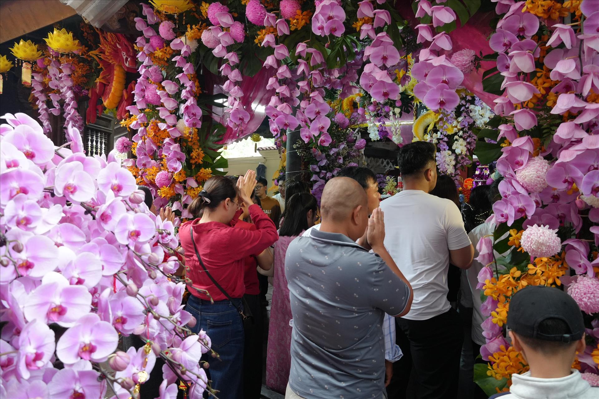 Chiều mùng 1 Tết Nguyên đán Bính ngọ tại Đền Mẫu luôn chật cứng người đến chiêm bái, cúng lễ. Ảnh: Mạnh Khánh-TTXVN