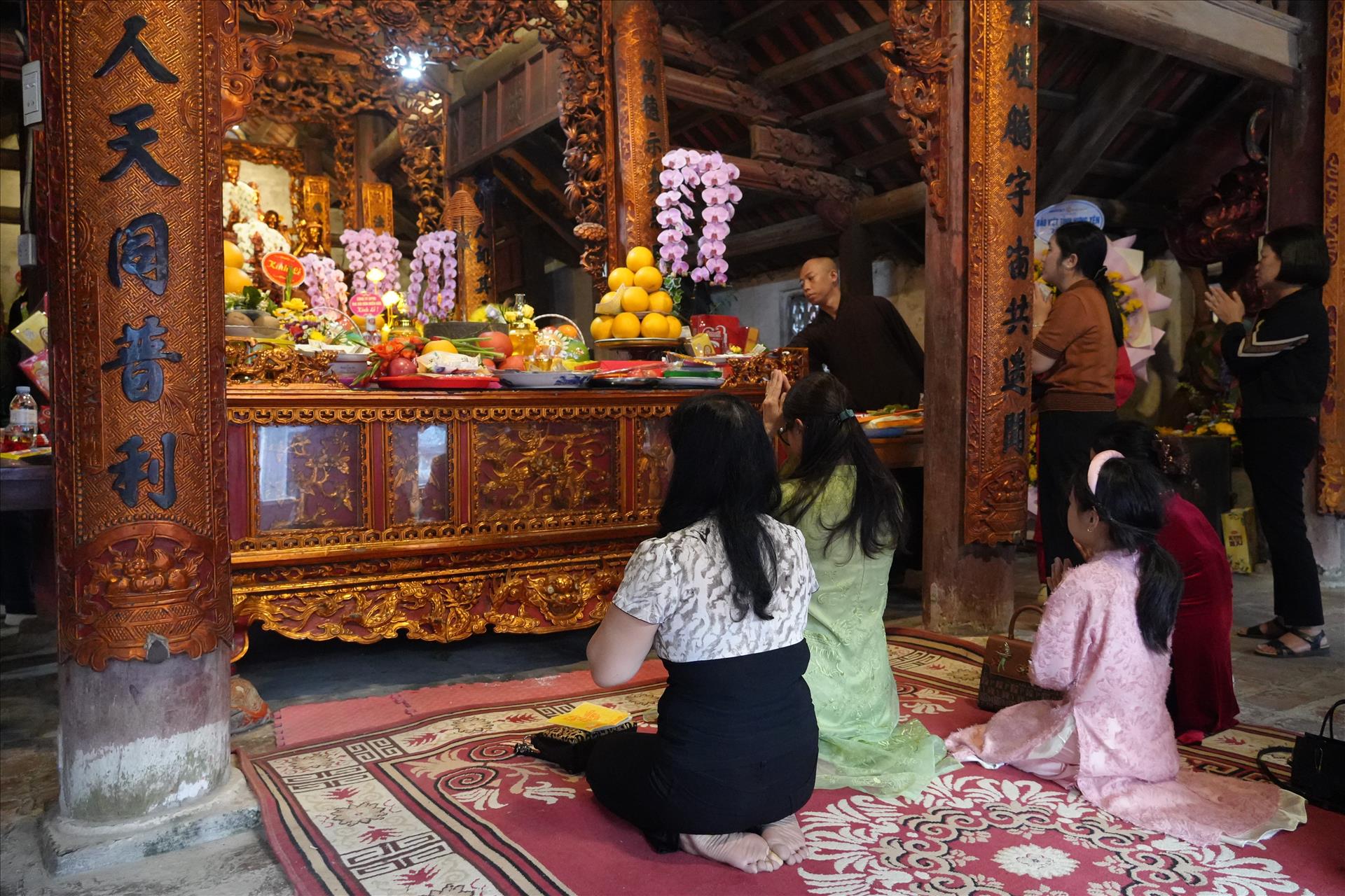Du khách, phật tử hành lễ tại Chùa Chuông chiều mùng 1 Tết Bính Ngọ 2026. Ảnh: Mạnh Khánh-TTXVN