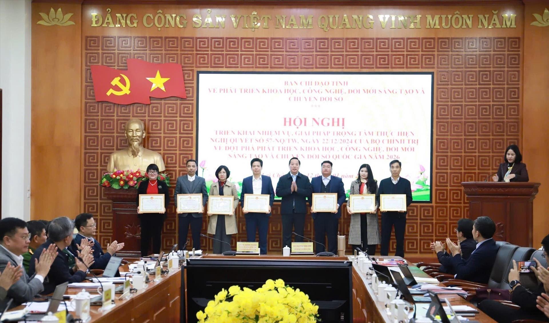Chủ tịch UBND tỉnh tặng Bằng khen cho 9 tập thể và 3 cá nhân có thành tích xuất sắc trong triển khai thực hiện Nghị quyết số 57-NQ/TW. Ảnh: Nguyễn Oanh-TTXVN