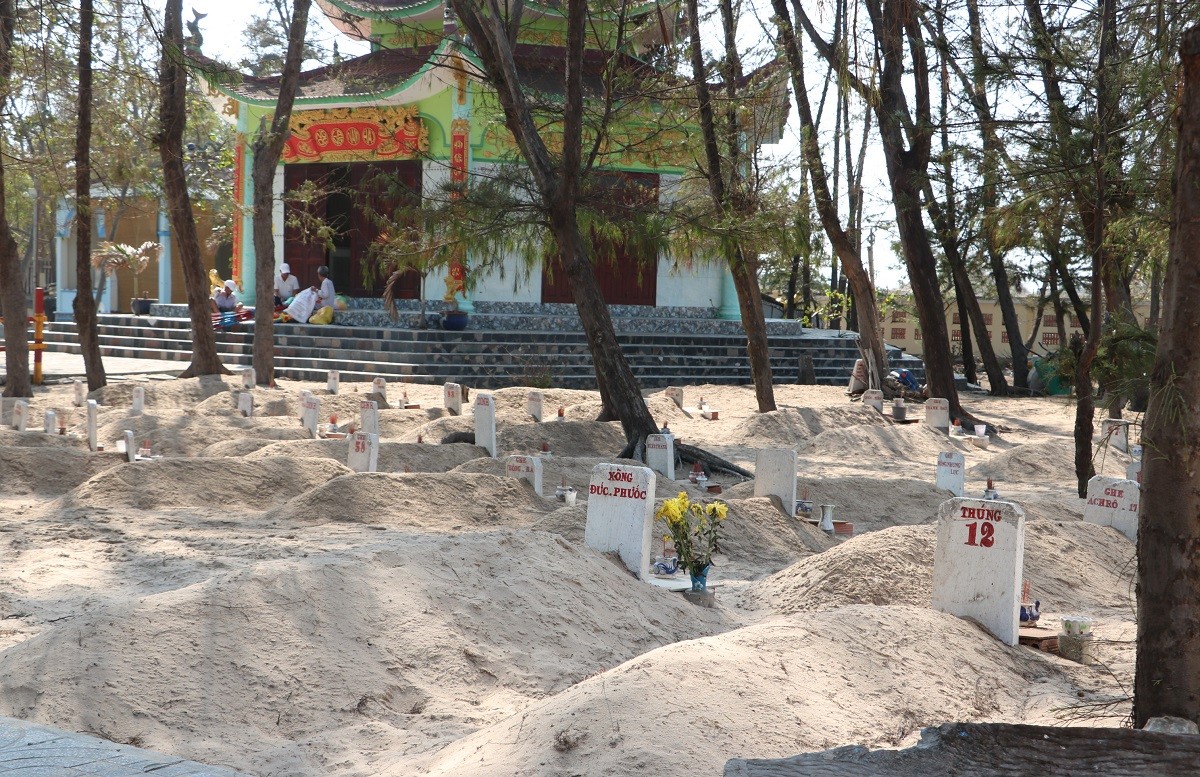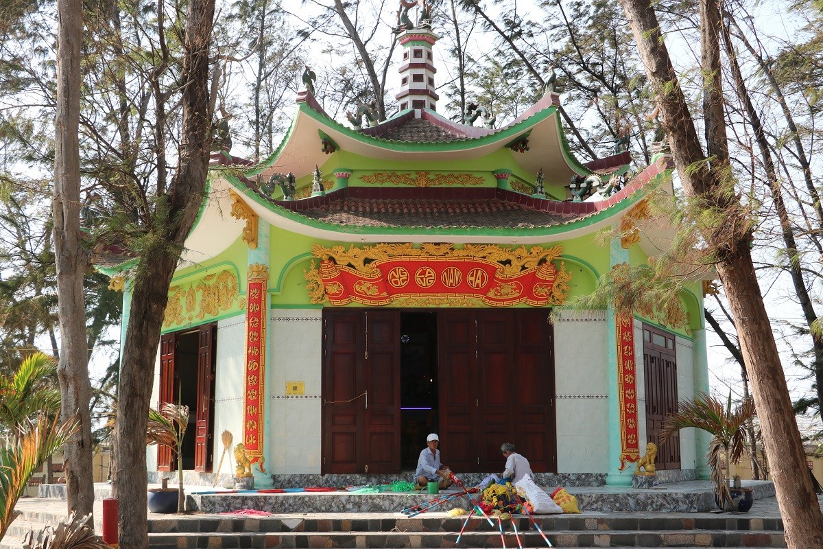 Nghĩa địa cá Ông rộng khoảng 2.000m2. Tại đây, ngoài thờ chính là Nam Hải Đại Tướng Quân, người dân còn thờ các vị thần Thành Hoàng, Quan Thánh Đế Quân, bà Ngũ Hành, Thổ chủ, Thổ võ (Trung linh)... trong điện Ngọc Lăng Nam Hải. Ảnh: Người đưa tin