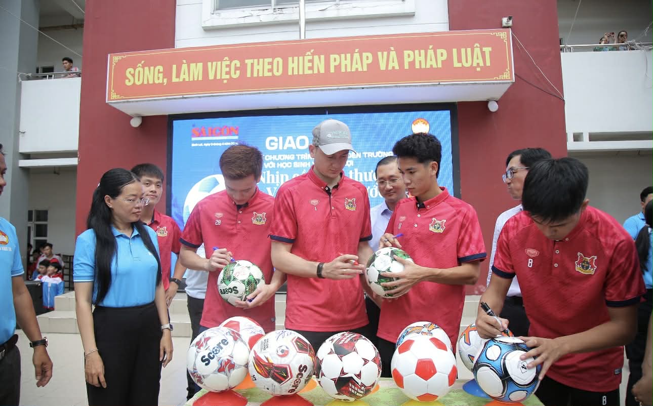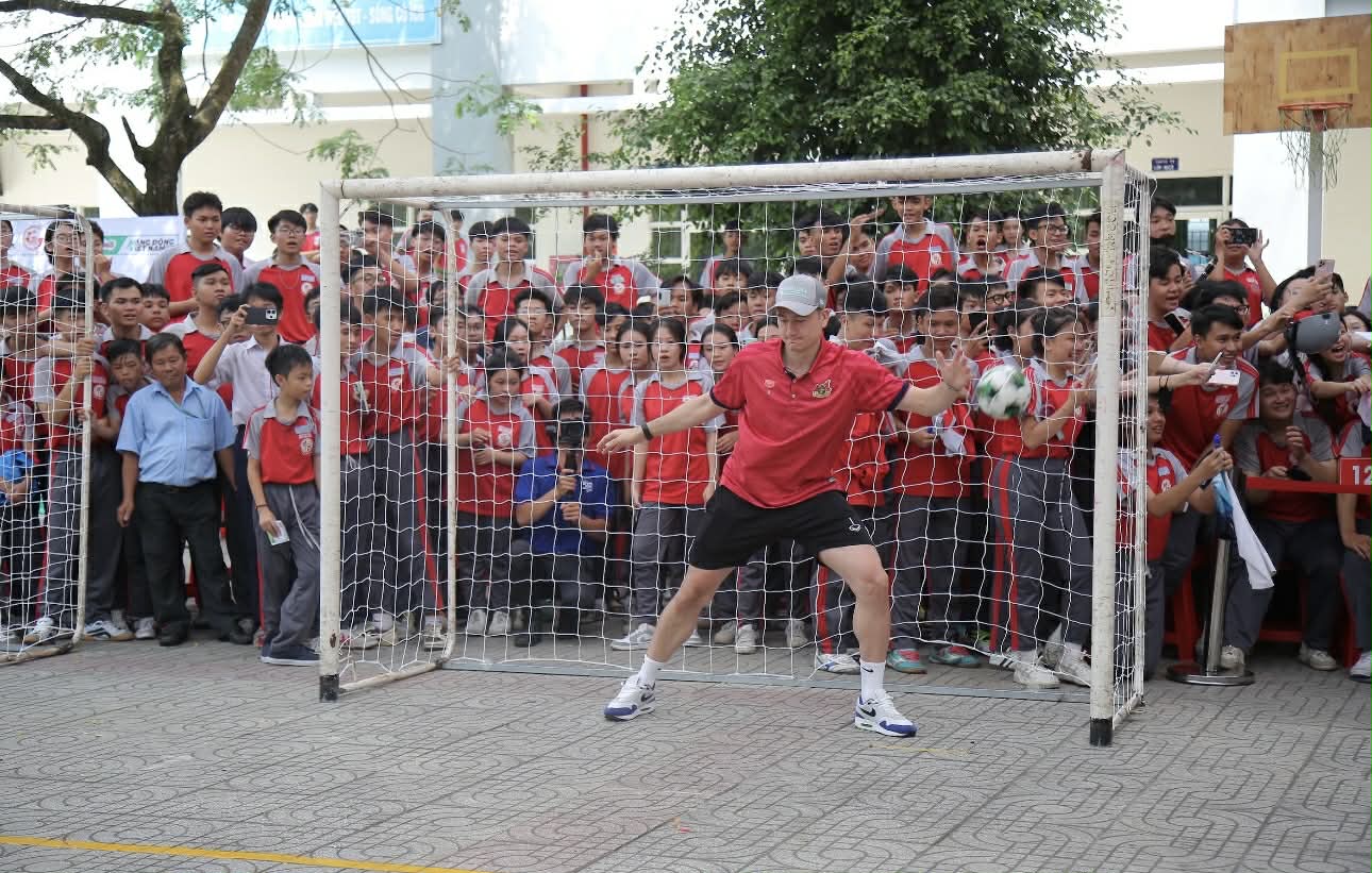 1. Chuyện sao thể thao tham gia các hoạt động thiện nguyện tất nhiên chẳng có gì mới lạ. Nhưng khi Hoàng Đức, người vừa được vinh danh là Quả bóng vàng Việt Nam 2025, cùng thủ môn Đặng Văn Lâm và các tài năng trẻ như Quốc Việt, Văn Thuận, Thành Trung xuất hiện, không khí đã thực sự "bùng nổ" với 1.338 học sinh.