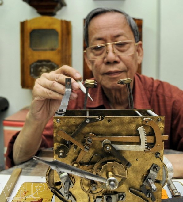 Năm nay đã ở tuổi 73, ông vẫn ngày ngày làm việc bên chiếc bàn nhỏ với lỉnh kỉnh chi tiết và chỉ bảo thêm cho con trai mình là anh Đào Vũ Hải. Anh Hải con trai ông giờ cũng là một thợ sửa đồng hồ lành nghề. Đúng là nghề sửa đồng hồ đã gắn với gia đình ông như một cái nghiệp, từ đời này truyền sang đời khác. Ông nói vui với chúng tôi rằng: “Tôi sửa đồng hồ hàng ngày thì thấy người khỏe mạnh, ngồi không một chỗ lại thấy mệt mỏi hơn”. Nhìn người thợ già miệt mài, lặng lẽ bên bàn làm việc, gắp từng con ốc, cái kim nhỏ xíu mới hiểu và cảm phục niềm đam mê của ông với thế giới vô hạn của thời gian./.