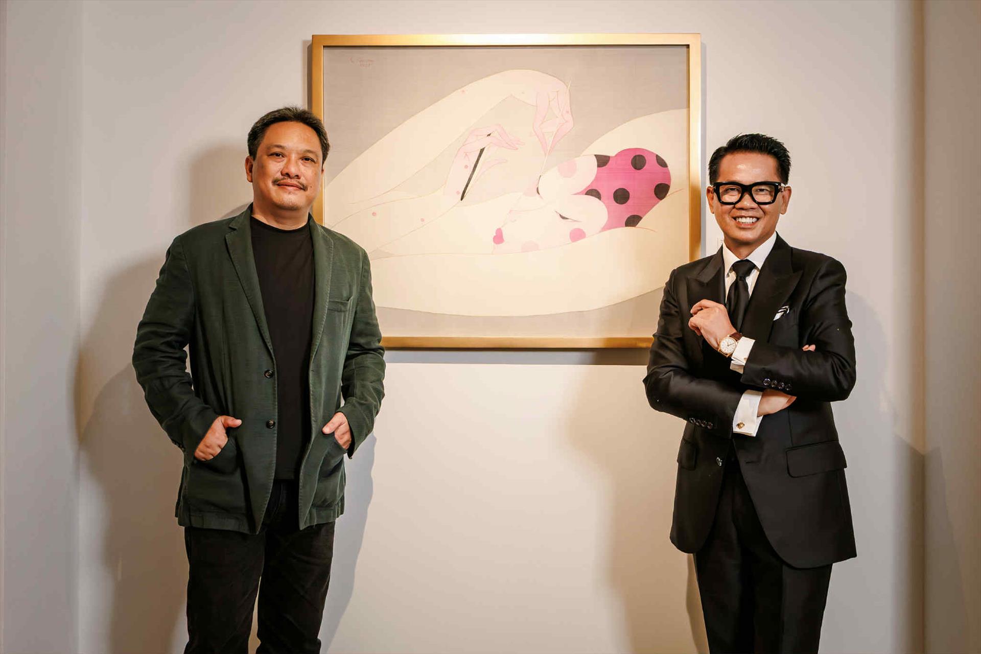 Họa sĩ Bùi Tiến Tuấn và Nhà giám tuyển Quách Thái Công.