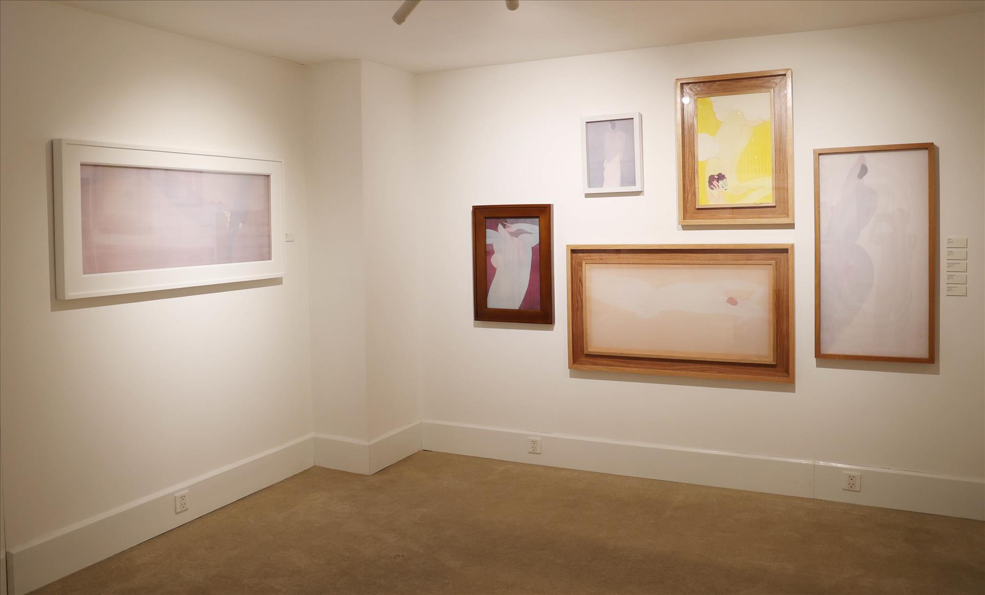 Không gian trưng bày các tác phẩm trong triển lãm “Lụa là”.