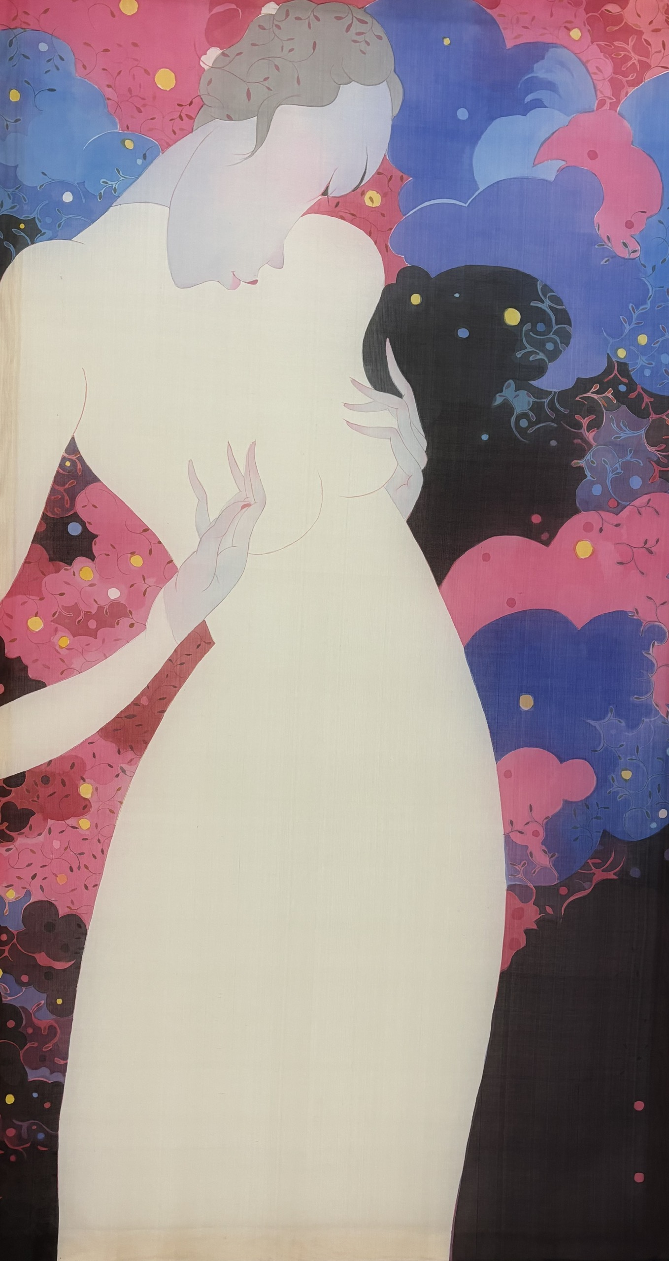 Và hành trình ấy bắt đầu với triển lãm Lụa là của họa sĩ Bùi Tiến Tuấn, người đã làm nên dấu ấn đặc biệt trong mỹ thuật Việt Nam bằng chất liệu lụa. Lụa là chính là lời mời gọi bước vào miền cảm xúc nơi những người phụ nữ hiện lên vừa dịu dàng vừa phóng khoáng, mềm mại như sợi tơ nhưng ẩn chứa nội lực khó nắm bắt. Lụa trong tranh ông không chỉ là chất liệu mà trở thành hơi thở, thành nhịp điệu, thành vẻ đẹp gợi cảm được cất lên từ truyền thống để hòa vào tinh thần đương đại.
