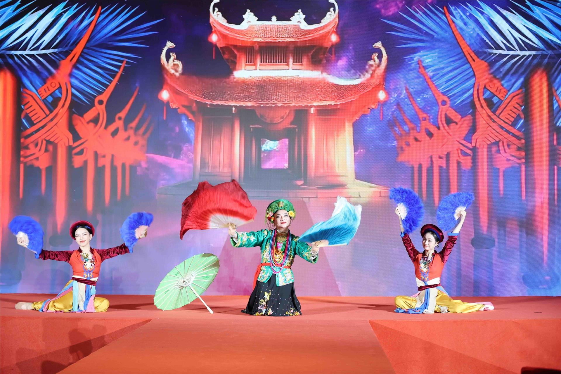 Tiết mục diễn xướng chầu văn “Cô Đôi Thượng Ngàn” do các nghệ sĩ đến từ Việt Nam biểu diễn. Ảnh: Công Tuyên-PV TTXVN tại Trung Quốc