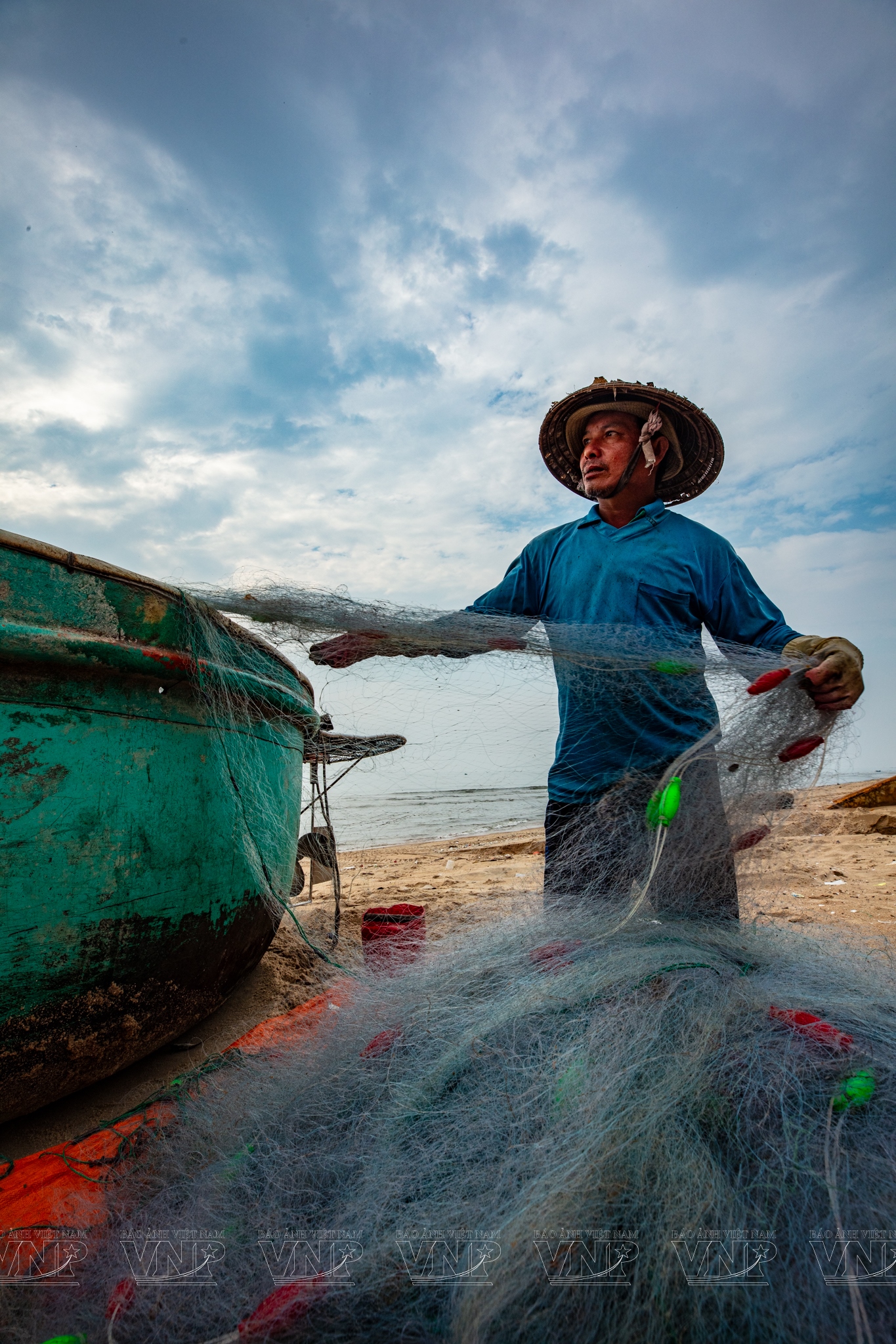 Hình ảnh lao động giản dị nhưng bền bỉ của ngư dân miền biển Phước Hải, những con người gắn bó trọn đời với sóng nước.