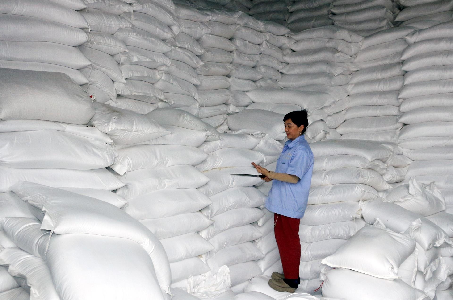 Công ty Cổ phần lương thực Hà Nam, phường Phủ Lý (Ninh Bình) đã dự trữ 30 tấn gạo nếp và 5.300 tấn gạo tẻ các loại để cung ứng cho thị trường Tết. Ảnh: Nguyễn Chinh - TTXVN