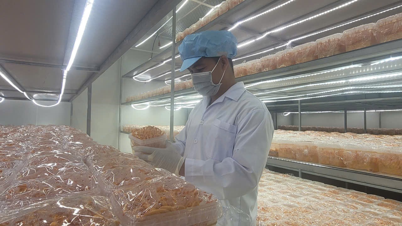 Hiện nay, mô hình đã đạt mức tự động hóa trên 80%, chủ động toàn bộ quy trình khép kín từ sản xuất giống, nuôi trồng, chế biến đến đóng gói, bảo đảm truy xuất nguồn gốc rõ ràng. Bên cạnh đó, mô hình này tận dụng nguồn nguyên liệu nông nghiệp sẵn có tại địa phương như gạo lứt, bột ngũ cốc, trứng gà, bột đậu nành, đường mía và phụ phẩm sinh khối sau thu hoạch làm giá thể nuôi trồng. Cách làm này không chỉ tối ưu chi phí mà còn góp phần hình thành mô hình sản xuất xanh, theo hướng kinh tế tuần hoàn, hạn chế tối đa chất thải.
