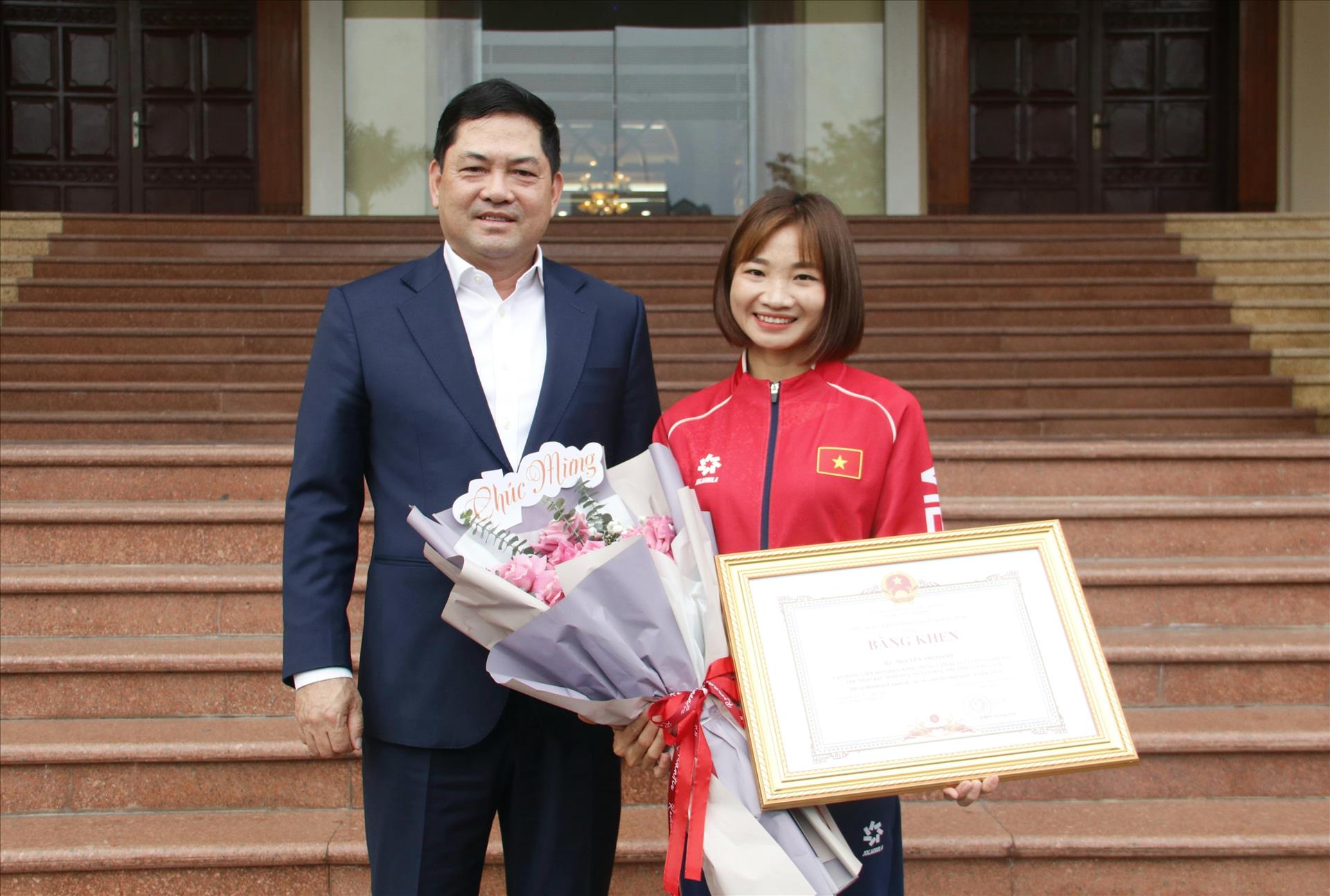 Tại buổi gặp mặt, khen thưởng các vận động viên đạt thành tích xuất sắc tại SEA Games 33, Bí thư Tỉnh ủy Bắc Ninh Nguyễn Hồng Thái chúc mừng và biểu dương những nỗ lực, cống hiến của các vận động viên đã mang lại niềm tự hào cho quê hương và đất nước. Trong đó, ông đặc biệt ghi nhận những thành tích nổi bật của Nguyễn Thị Oanh, nhấn mạnh 15 tấm Huy chương Vàng qua các kỳ SEA Games không chỉ là dấu ấn của tài năng và bản lĩnh thi đấu mà còn là minh chứng cho ý chí bền bỉ, tinh thần vượt khó của một vận động viên luôn nỗ lực vì màu cờ sắc áo.