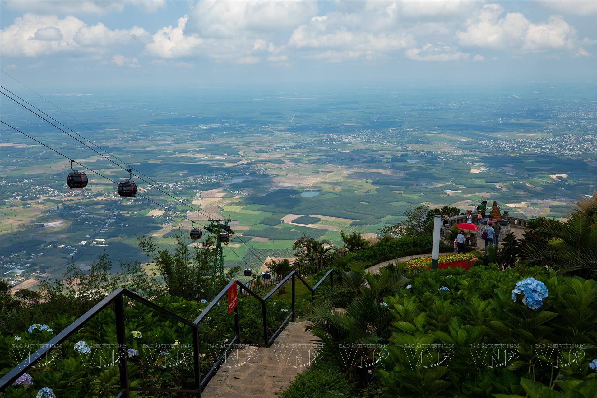 Hệ thống cáp treo gồm hai tuyến chính, đáp ứng nhu cầu tham quan và hành hương. Tuyến Vân Sơn dài 1.847m đưa du khách từ chân núi lên thẳng đỉnh cao 986m. Từ cabin lơ lửng giữa không trung, toàn cảnh thung lũng xanh mướt hiện ra phía dưới, xa xa là thành phố Tây Ninh thanh bình. Nếu đi vào buổi sáng sớm, du khách còn có cơ hội “săn mây”, chiêm ngưỡng từng lớp mây trắng bồng bềnh ôm trọn đỉnh núi – khoảnh khắc khiến nhiều người không khỏi trầm trồ.