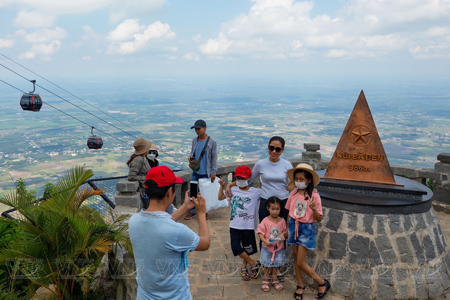 Hoạt động đầu tiên của hầu hết du khách khi đặt chân lên đỉnh núi Ba Đen là tới check-in cột mốc độ cao 986m trên đỉnh núi – niềm tự hào của người dân Tây Ninh.