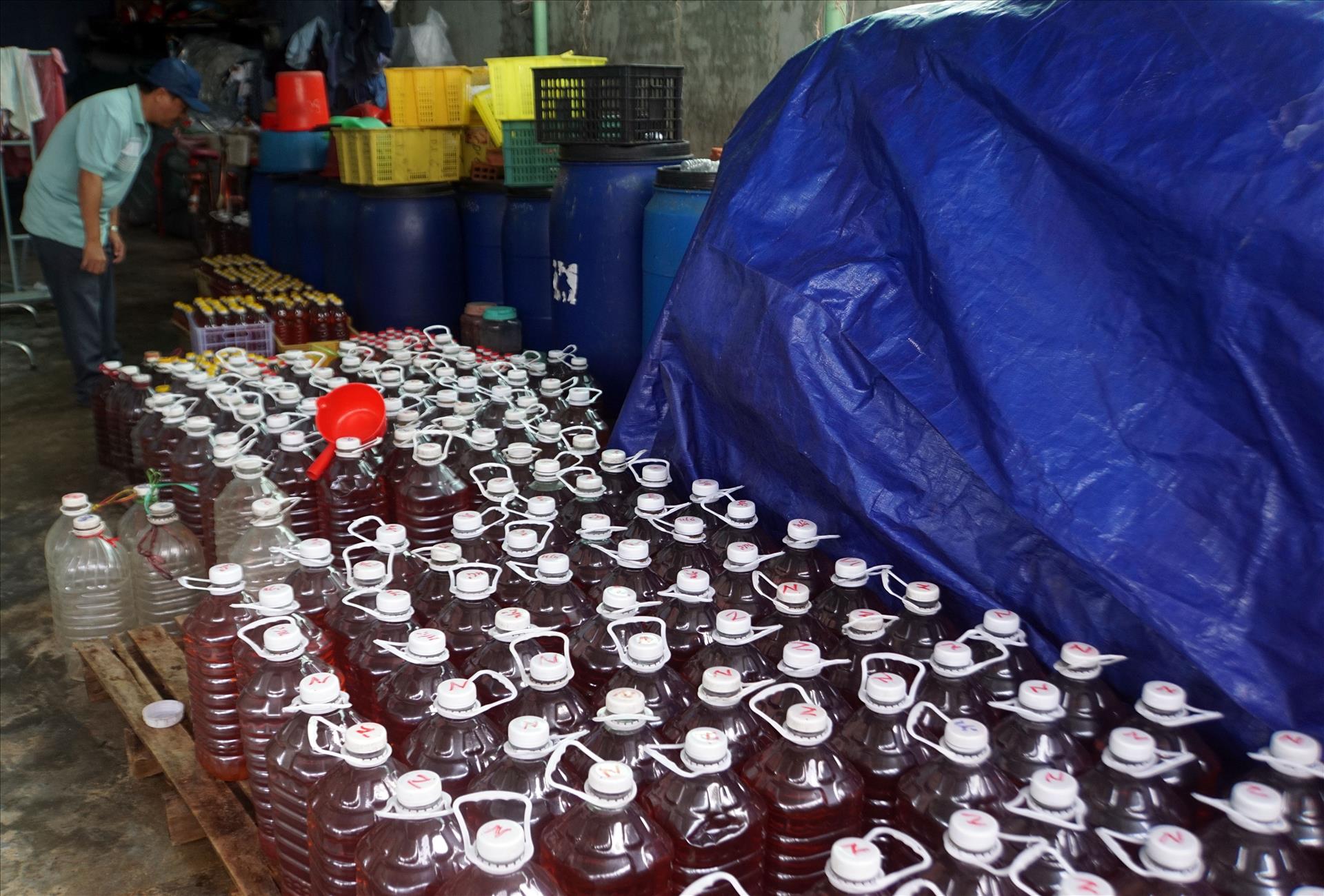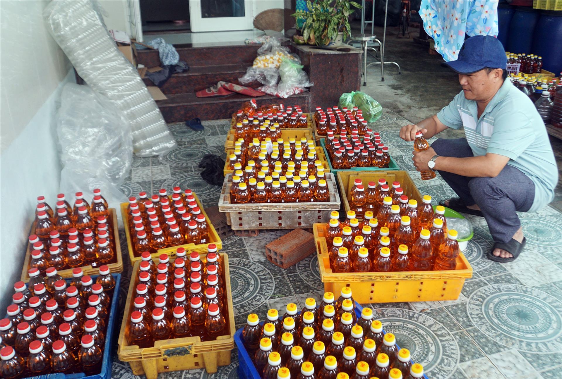Nước mắm Đề Ghi được chế biến hoàn toàn từ cá tươi ngon, thu hút thương lái và người tiêu dùng ở các địa phương trong và ngoài tỉnh tìm đến đặt mua. Ảnh: Trịnh Bang Nhiệm - TTXVN