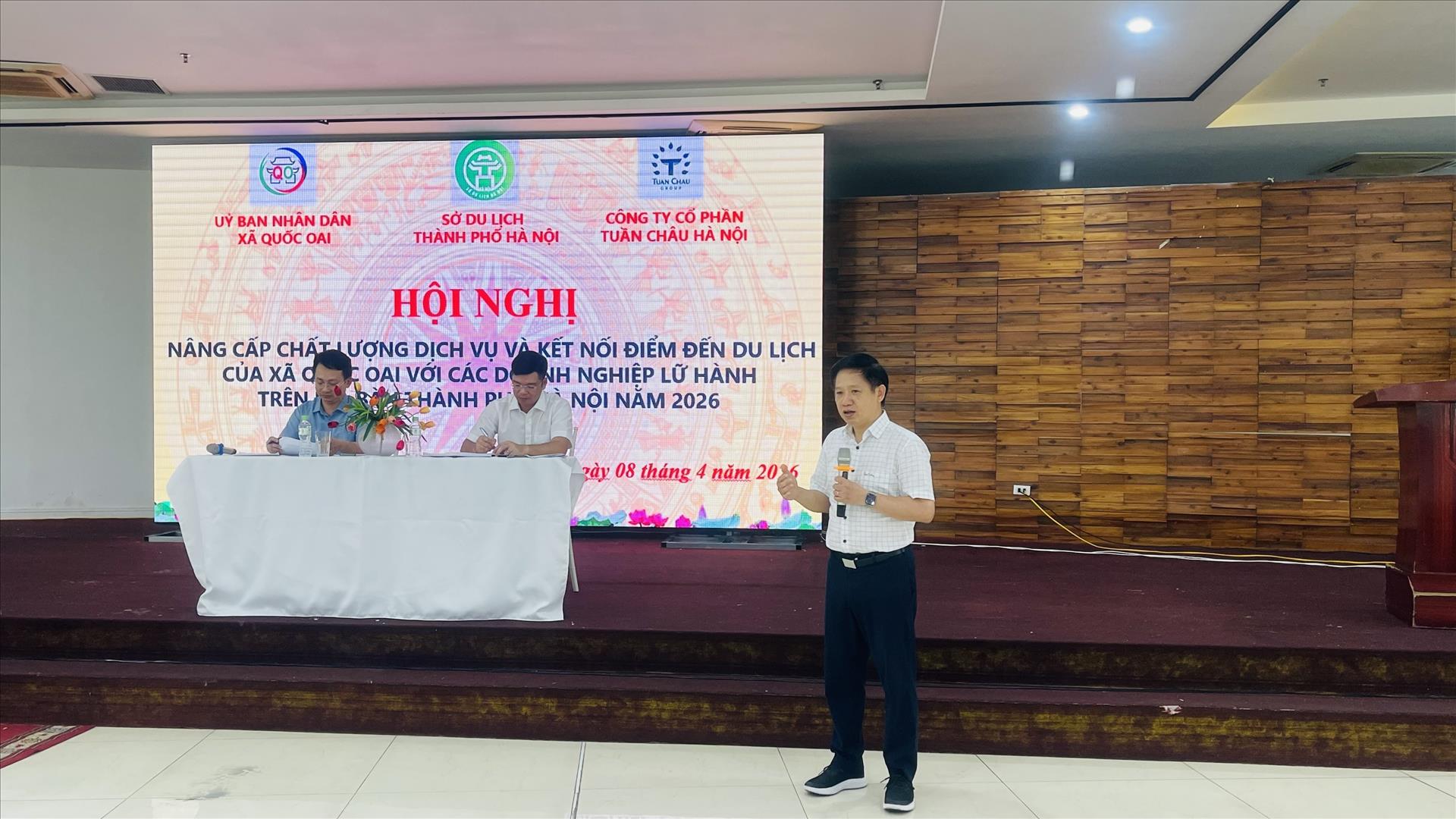 Tại Hội nghị "Nâng cấp chất lượng dịch vụ và kết nối điểm đến du lịch của xã Quốc Oai với các doanh nghiệp lữ hành trên địa bàn thành phố Hà Nội năm 2026" tổ chức ngày 8/4, Phó Giám đốc Sở Du lịch Hà Nội Trần Trung Hiếu thẳng thắn chỉ ra những điểm yếu trong phát triển du lịch xã Quốc Oai, đồng thời đề nghị các đại biểu tập trung đưa ra giải pháp nâng cấp chất lượng dịch vụ tại điểm đến xã Quốc Oai; chuẩn hóa công tác quản lý điểm đến, đảm bảo môi trường du lịch an toàn, văn minh, thân thiện và có khả năng cạnh tranh.