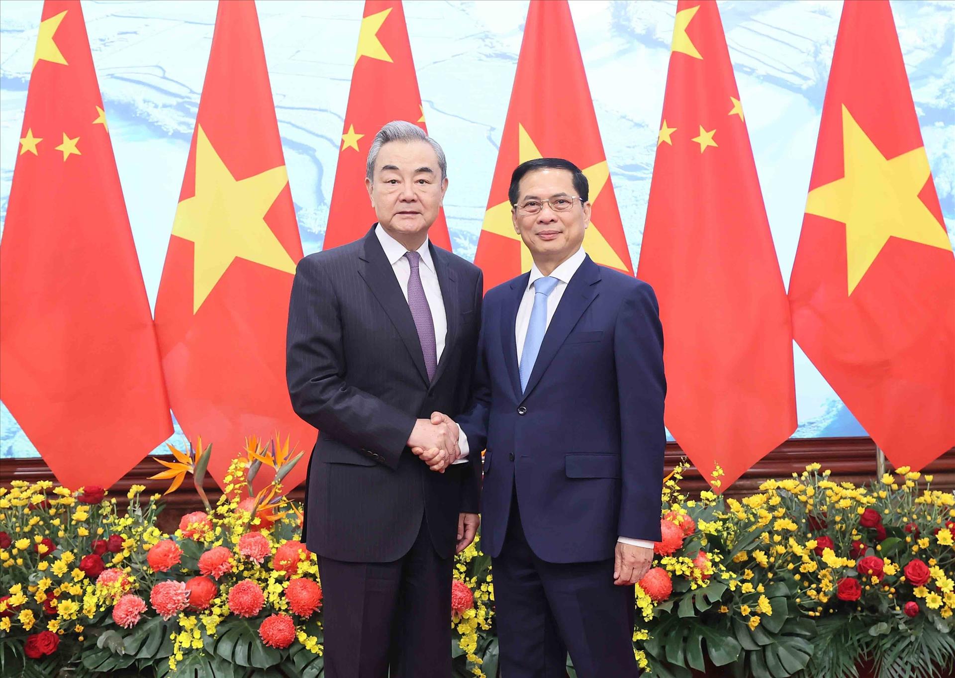Phó Thủ tướng Bùi Thanh Sơn đón Bộ trưởng Ngoại giao Trung Quốc Vương Nghị. Ảnh: An Đăng - TTXVN