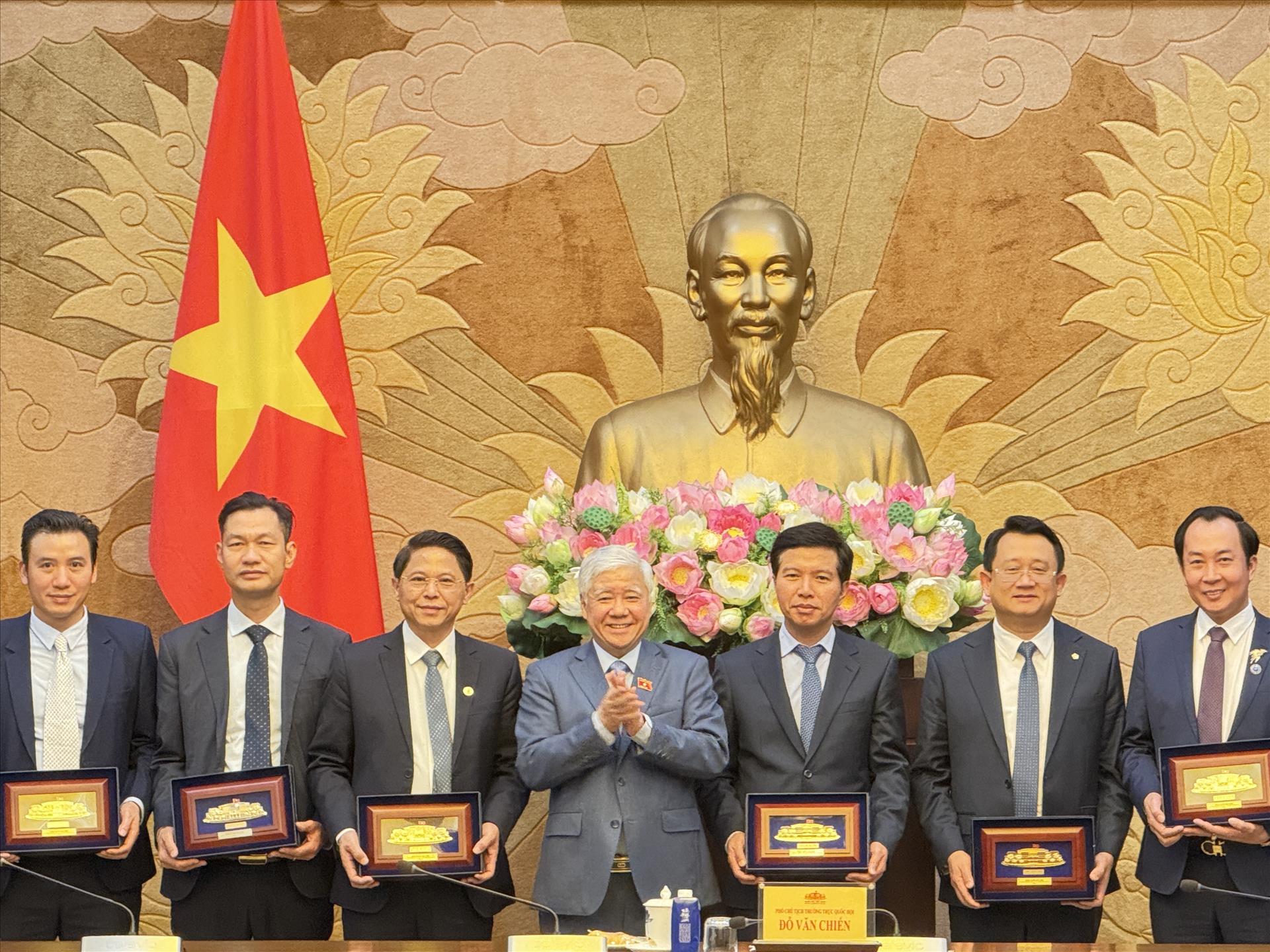Nhân dịp này, Phó Chủ tịch Thường trực Quốc hội Đỗ Văn Chiến đã trao quà tặng Chủ tịch Hội Doanh nhân trẻ tỉnh Bắc Ninh Nguyễn Tiến Long và các hội viên Hội Doanh nhân trẻ tỉnh Bắc Ninh.