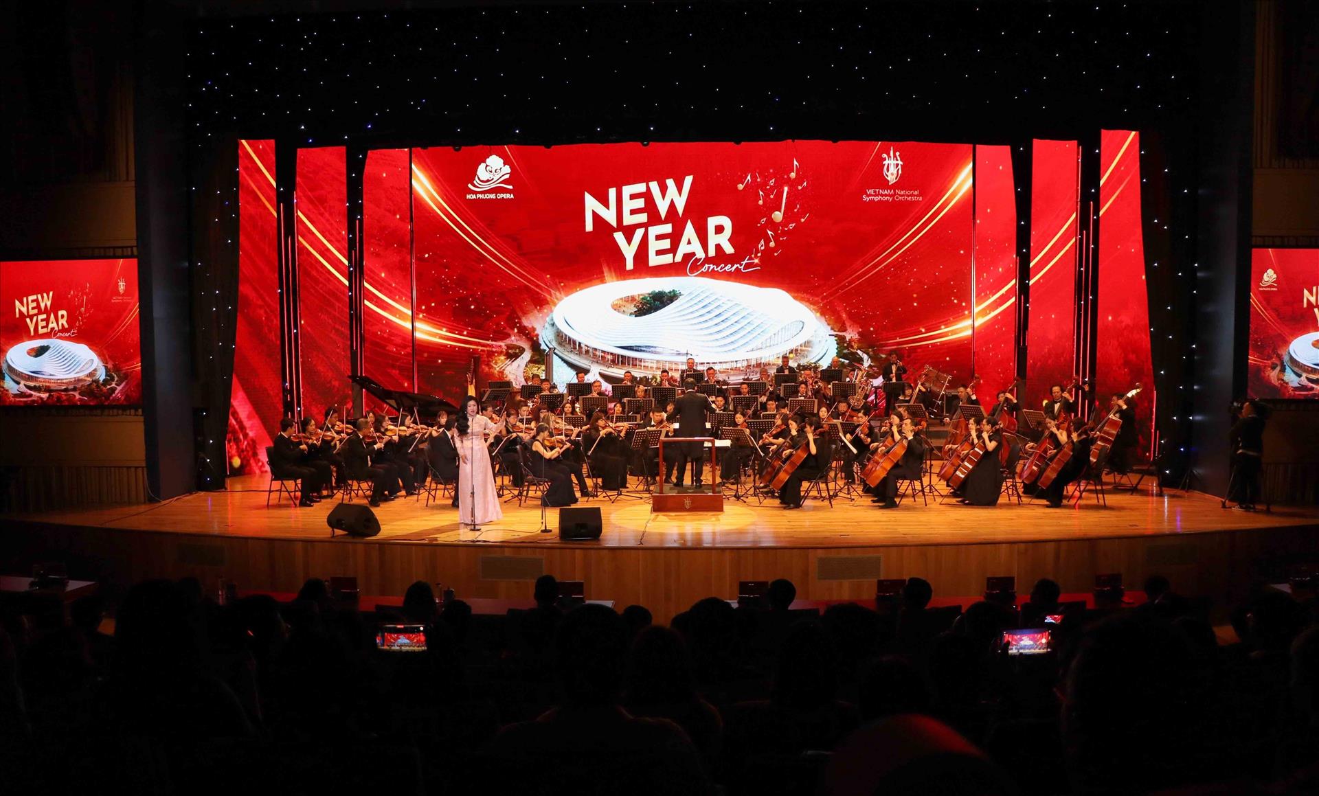 Chương trình nghệ thuật chào năm mới “New Year Concert” diễn ra trong không gian hiện đại của Nhà hát Hoa Phượng. Ảnh: Hoàng Ngọc - TTXVN