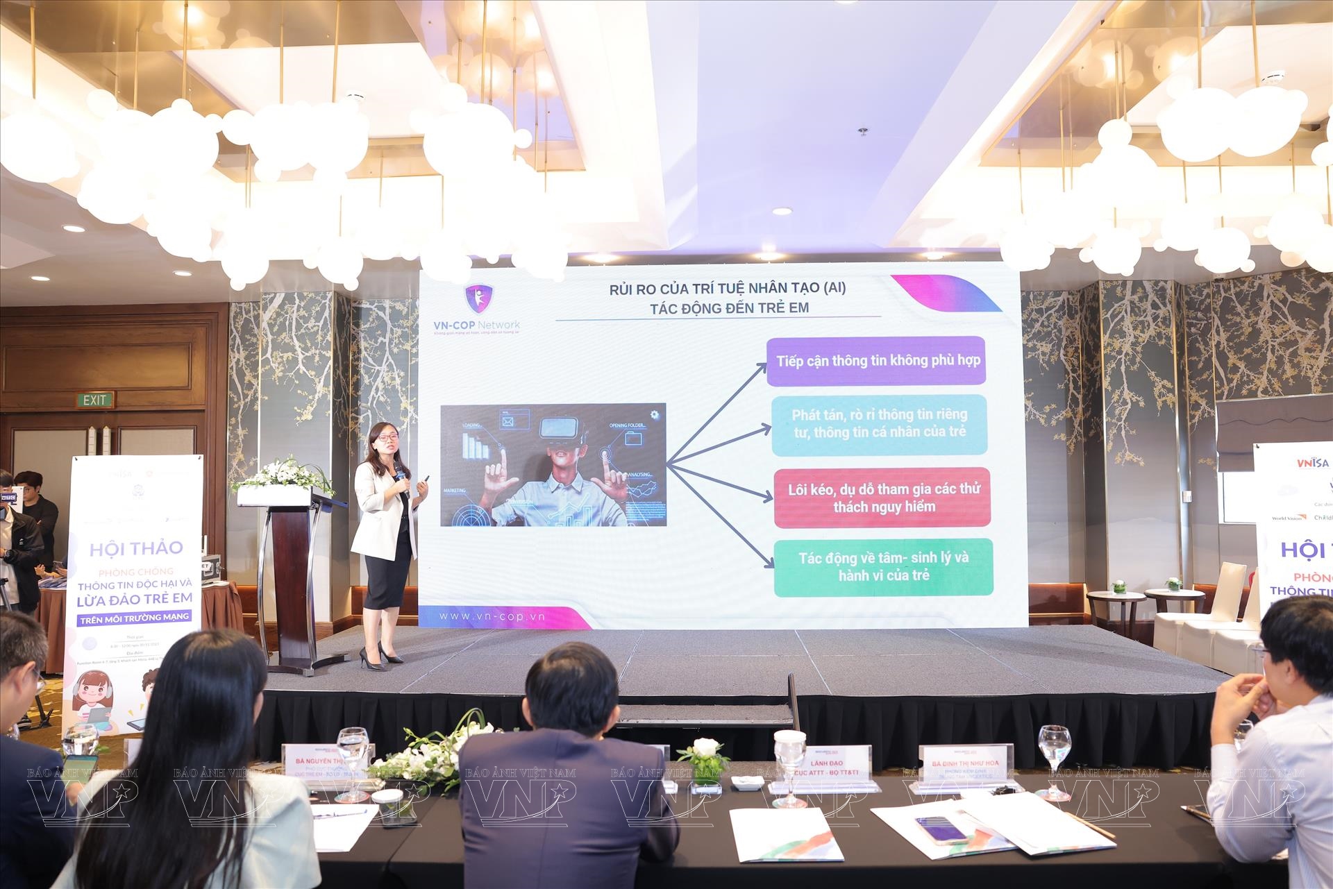 Bà Nguyễn Thu Hà và các chuyên gia quốc tế đến từ Tổ chức Tầm nhìn thế giới World Vision tại Việt Nam đã đóng góp tham luận: hoạt động thực tiễn ngăn chặn xâm hại trẻ em trên môi trường mạng, mô hình và sáng kiến. Bà cho biết: Hỗ trợ bảo vệ trẻ em trên môi trường mạng, sự đồng hành của cha mẹ, nhà trường, các công ty công nghệ và cơ quan quản lý nhà nước là rất cần thiết. Chúng tôi sẽ tổ chức nhiều hoạt động thực tiễn để tuyên truyền, phổ biến, nâng cao nhận thức của cộng đồng trong phòng chống thông tin độc hại bảo vệ và hỗ trợ trẻ em tương tác lành mạnh, sáng tạo trên môi trường nói chung trong thời gian tới./.