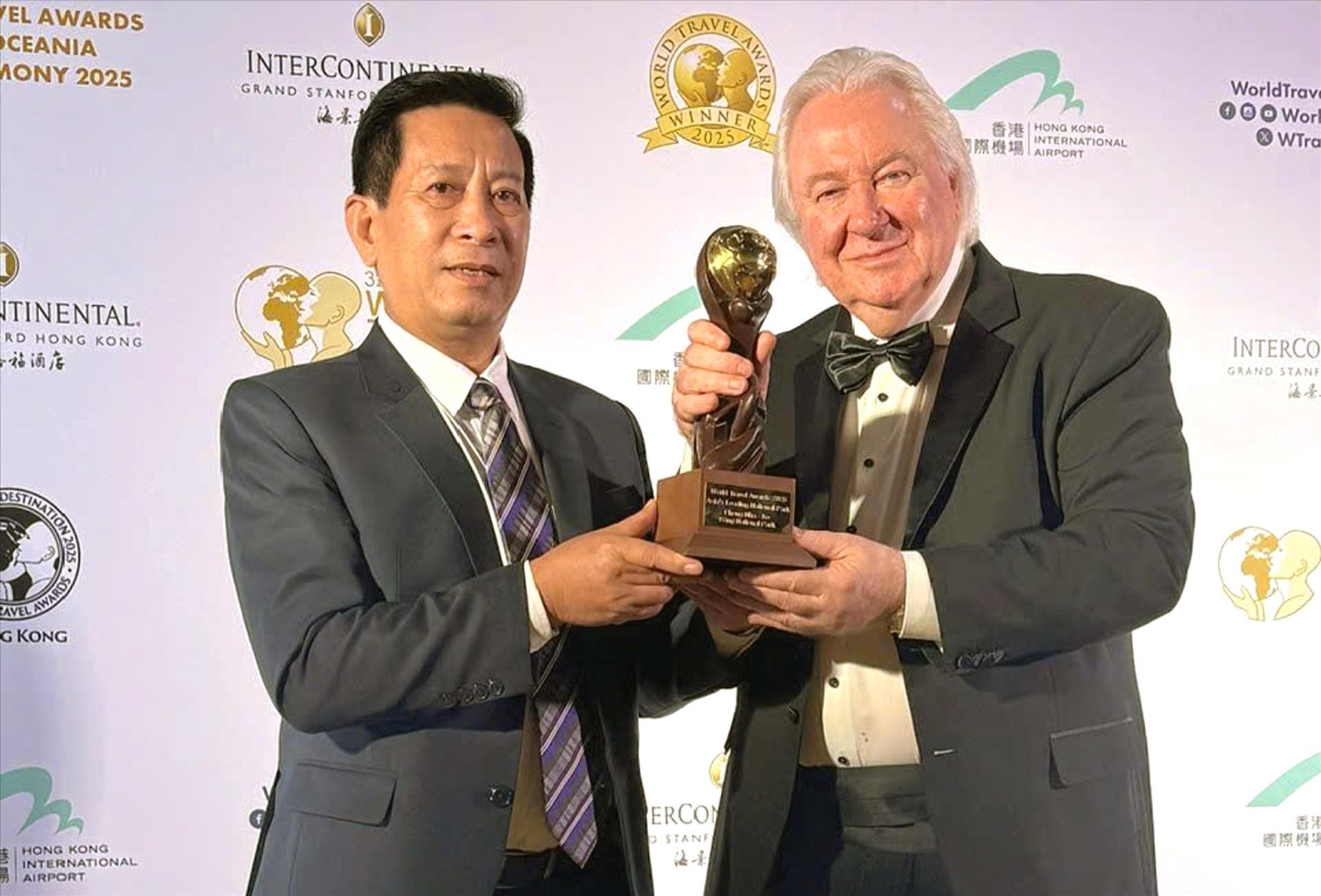 Ông Phạm Hồng Thái, Giám đốc Ban Quản lý Vườn Quốc gia Phong Nha - Kẻ Bàng nhận giải thưởng danh giá Vườn Quốc gia hàng đầu châu Á 2025. Ảnh: TTXVN phát