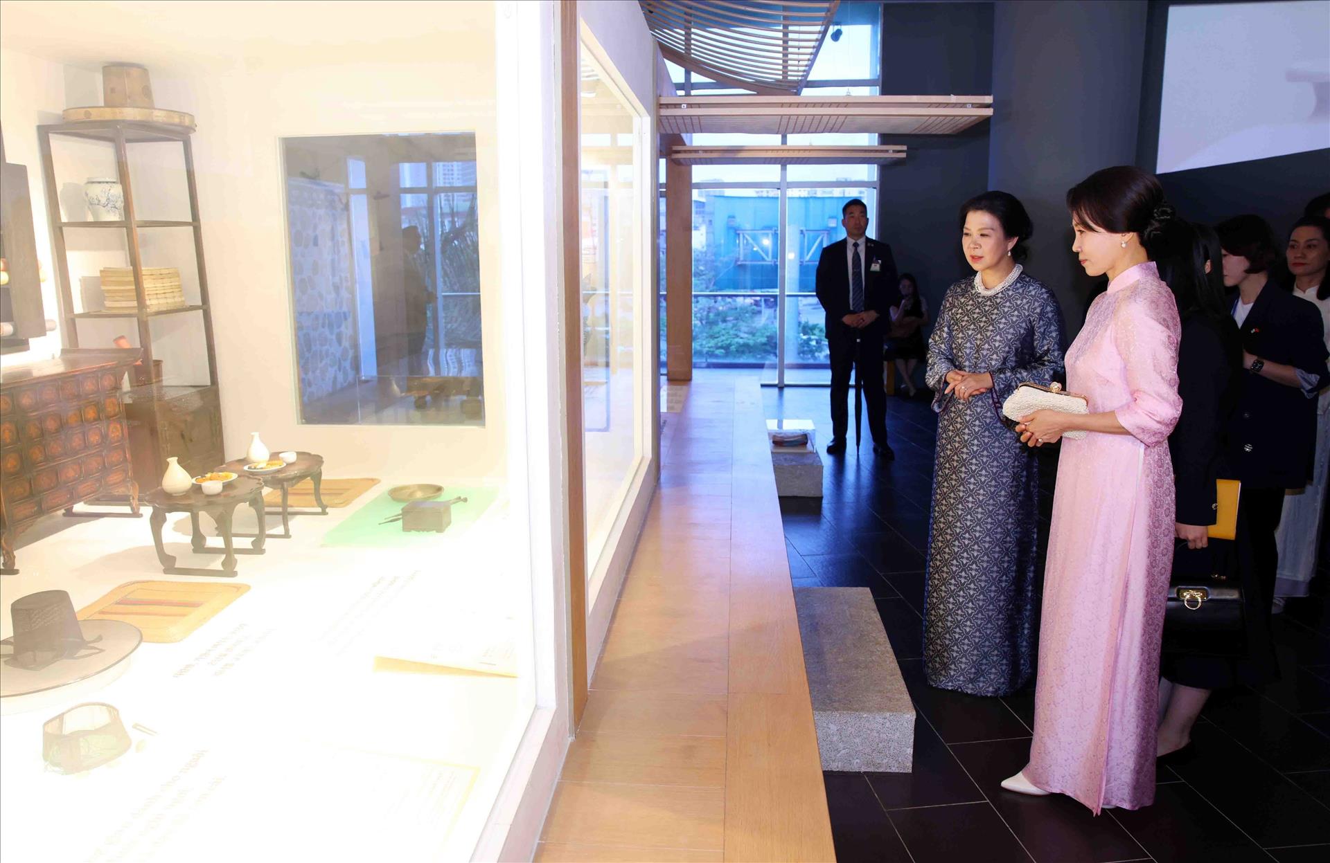 Phu nhân Tổng Bí thư, Chủ tịch nước và Phu nhân Tổng thống Hàn Quốc tham quan Bảo tàng dân tộc học