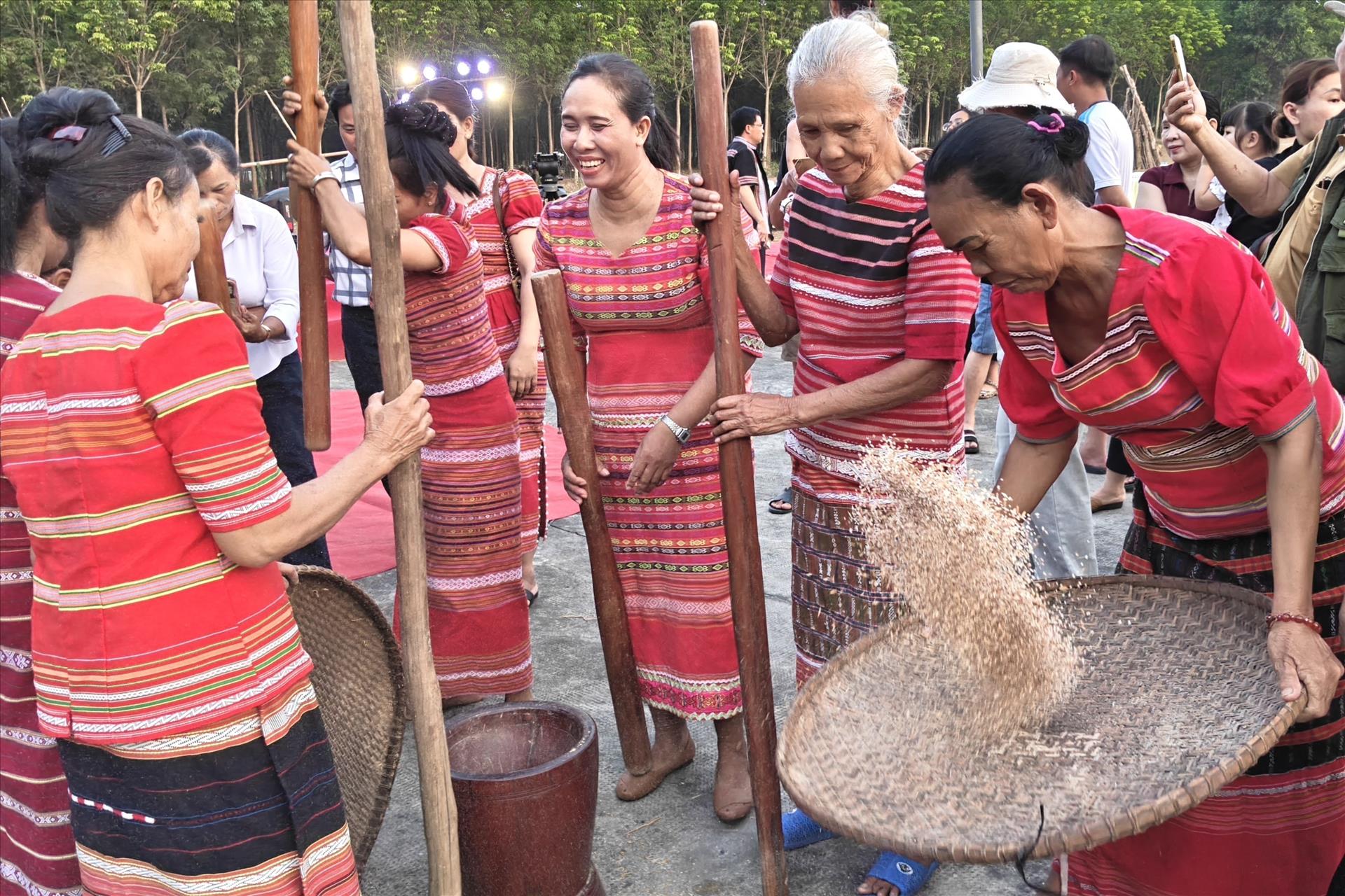 Trong tiếng cồng chiêng réo rắt và rộn rã, mọi người quây quần bên nhau cùng thưởng thức cơm lam, uống rượu cần nồng đượm. Không khí càng thêm náo nức khi các nam thanh nữ tú bắt đầu múa hát, khiến cuộc vui cứ thế kéo dài trong niềm hân hoan của dân làng.