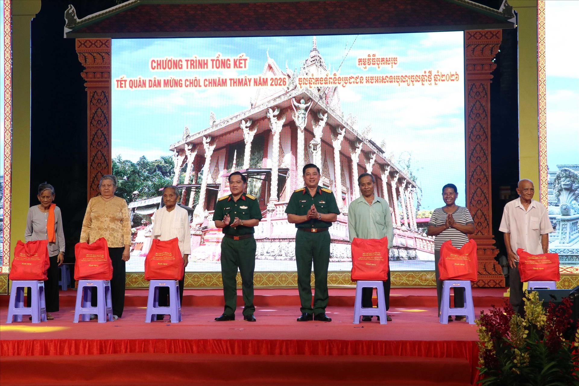 Tối 12/4, tại chùa Tum Núp (xã An Ninh, thành phố Cần Thơ), Bộ Chỉ huy Quân sự thành phố Cần Thơ tổ chức chương trình tổng kết các hoạt động “Tết Quân Dân mừng Chôl Chnăm Thmây năm 2026”, góp phần thắt chặt tình đoàn kết quân dân và chăm lo đời sống tinh thần, vật chất cho đồng bào dân tộc Khmer nhân dịp Tết cổ truyền.