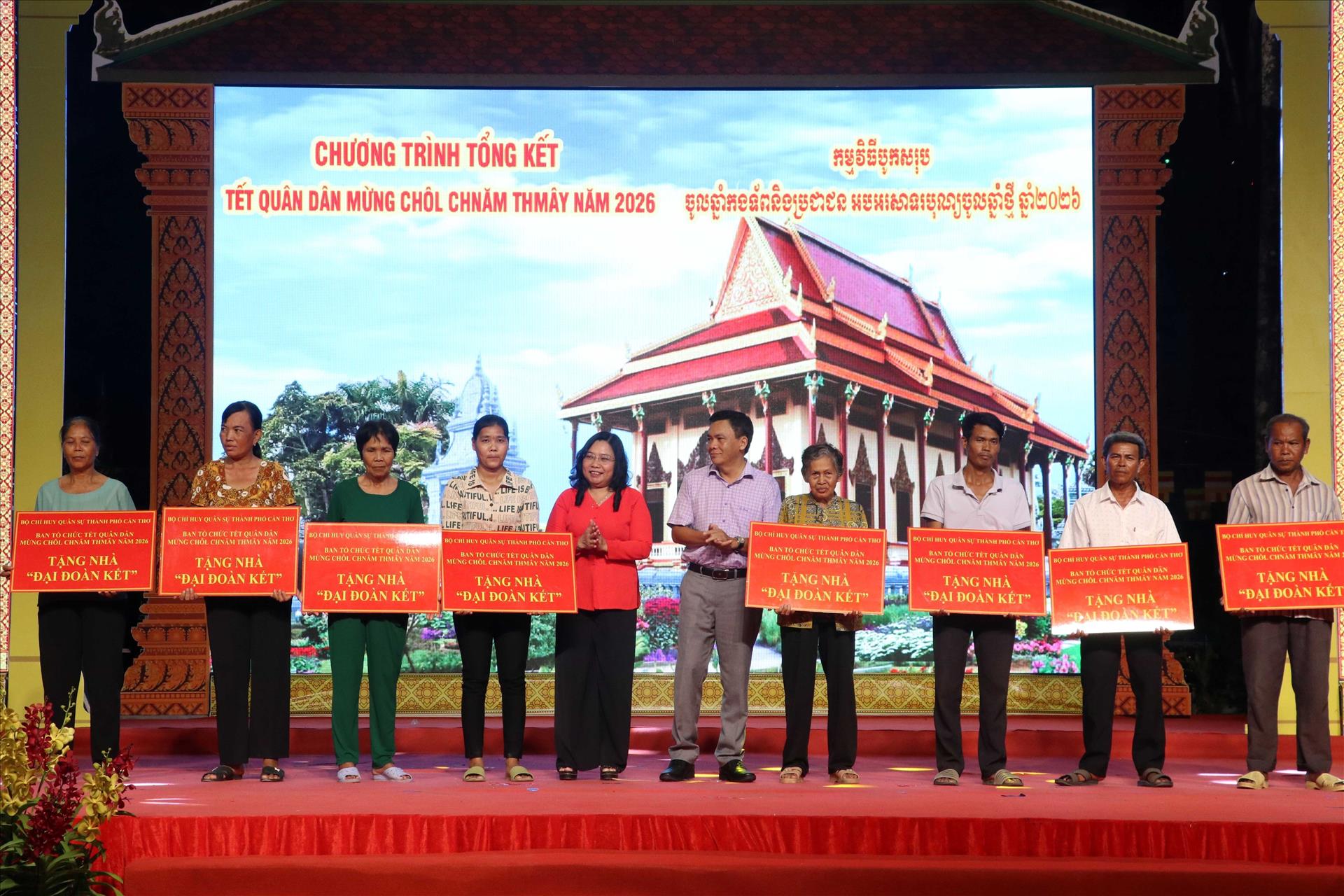 Dịp này, Ban Tổ chức trao tặng Nhà Đại đoàn kết cho các hộ gia đình khó khăn về nhà ở do Bộ Chỉ huy Quân sự và Ủy ban Mặt trận Tổ quốc thành phố vận động; trao tặng nhiều phần quà Tết cho các vị trụ trì chùa Khmer, gia đình chính sách và hộ nghèo; tặng học bổng và xe đạp cho học sinh dân tộc Khmer vượt khó học giỏi; trao tặng tivi cho các trường học…