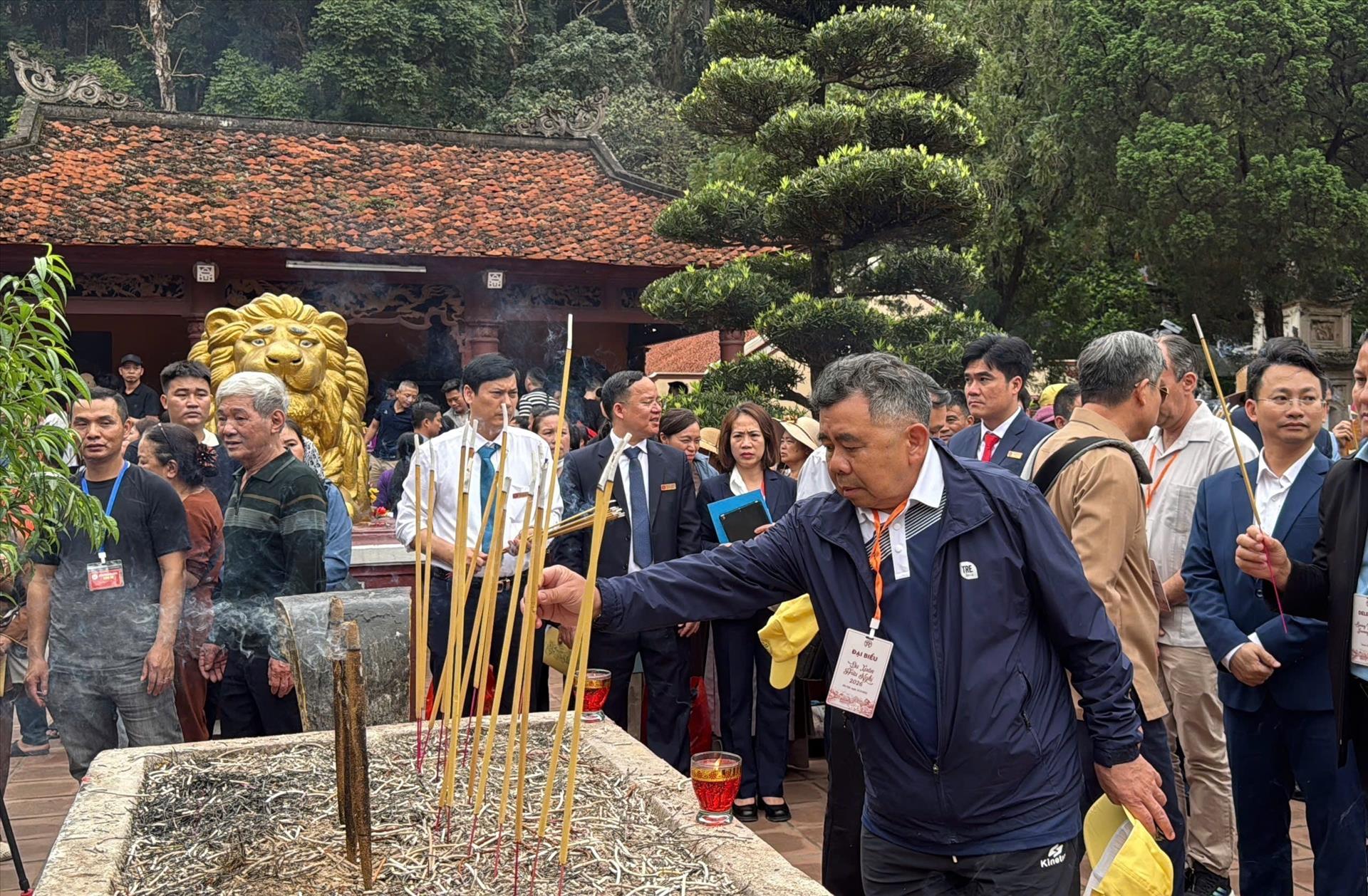 Các đại biểu dâng hương tại chùa Thiên Trù. Ảnh: TTXVN phát