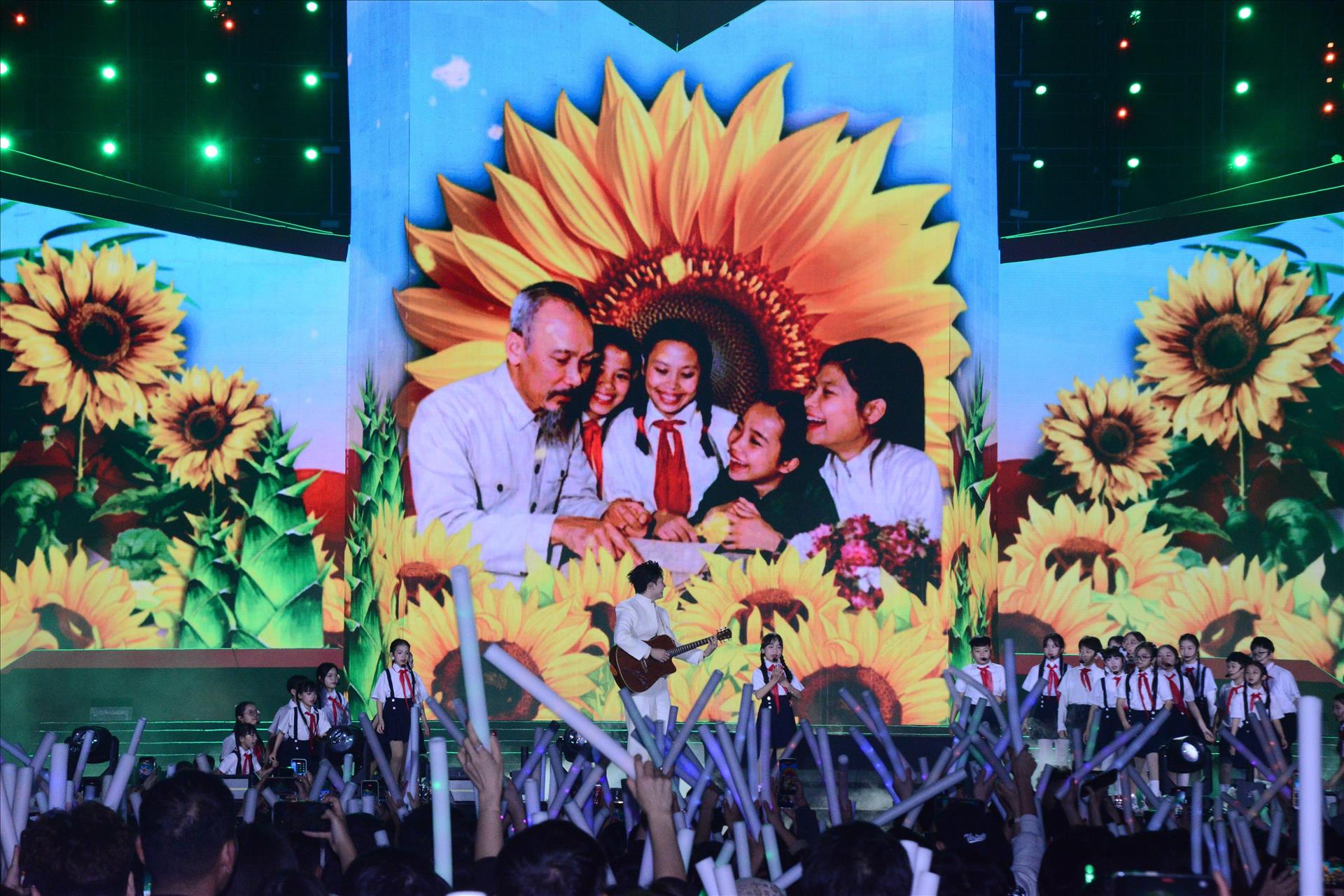 Các ca khúc về Đảng, Bác Hồ được dàn dựng hoành tráng. Ảnh: Thanh Vân-TTXVN