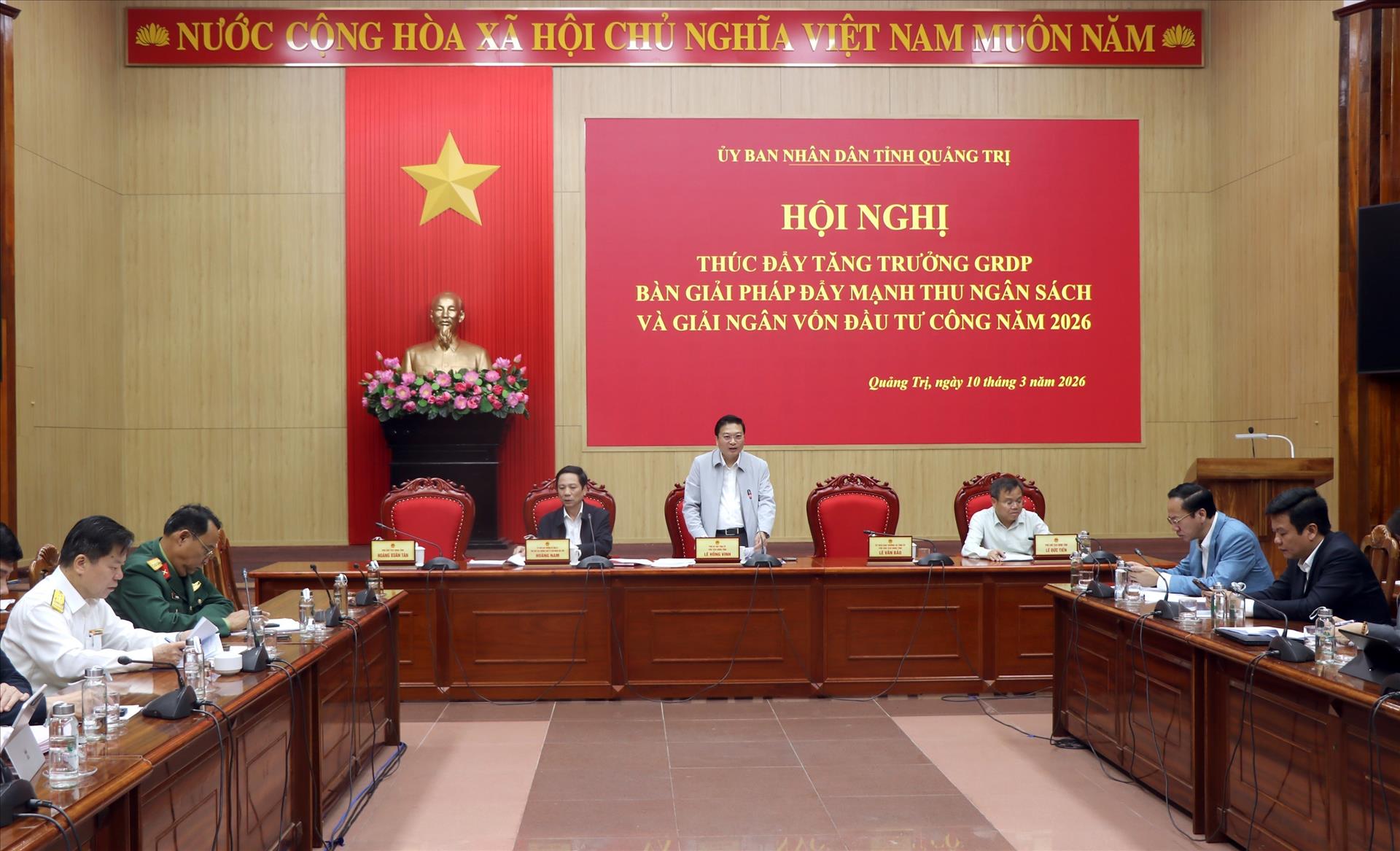 Chiều 10/3, UBND tỉnh Quảng Trị tổ chức hội nghị thúc đẩy tăng trưởng tổng sản phẩm trên địa bàn (GRDP), bàn các giải pháp tăng thu ngân sách và đẩy nhanh giải ngân vốn đầu tư công năm 2026. Hội nghị tập trung đánh giá các động lực tăng trưởng của nền kinh tế, đồng thời rà soát những khó khăn, điểm nghẽn trong quản lý thu ngân sách và triển khai đầu tư công để kịp thời đề ra các giải pháp điều hành phù hợp.