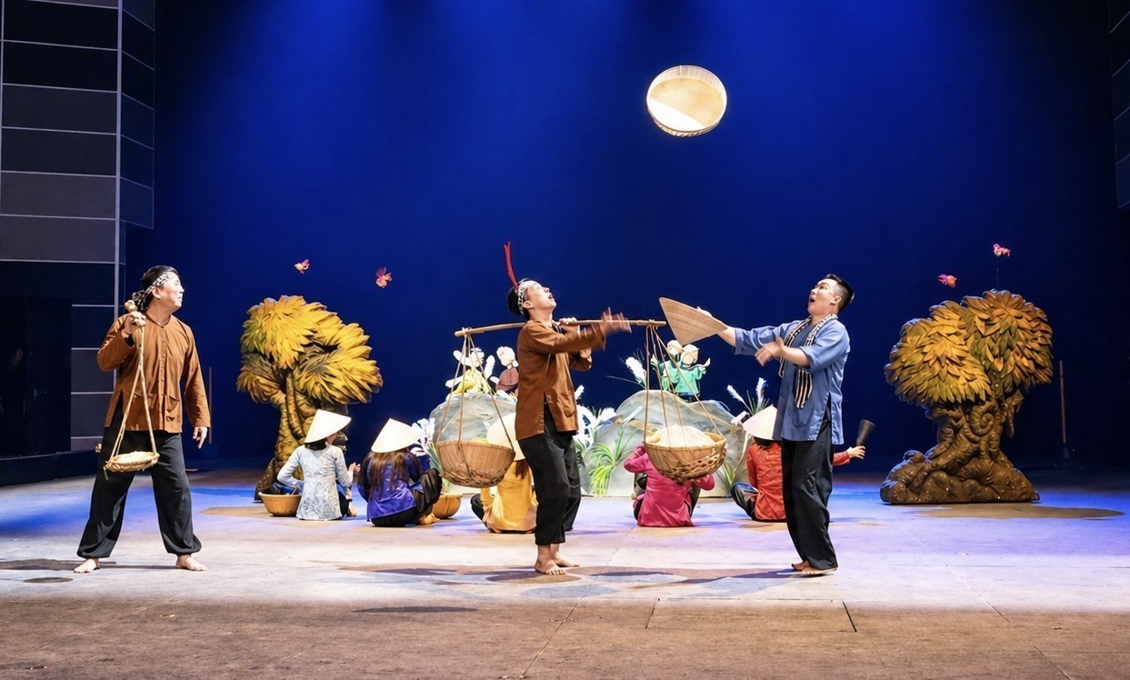 Trong khi đó, tiết mục múa rối “Ngày mùa” tái hiện sinh động đời sống lao động của người nông dân Việt Nam. Những con rối được điều khiển khéo léo đã kể câu chuyện về niềm vui thu hoạch, về sự gắn bó với ruộng đồng, qua đó tôn vinh giá trị lao động và bản sắc văn hóa nông nghiệp.