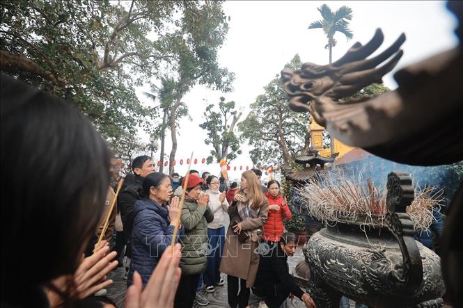 Người dân đến lễ rằm tại chùa Trấn Quốc (Hà Nội). Ảnh: Minh Quyết/TTXVN
