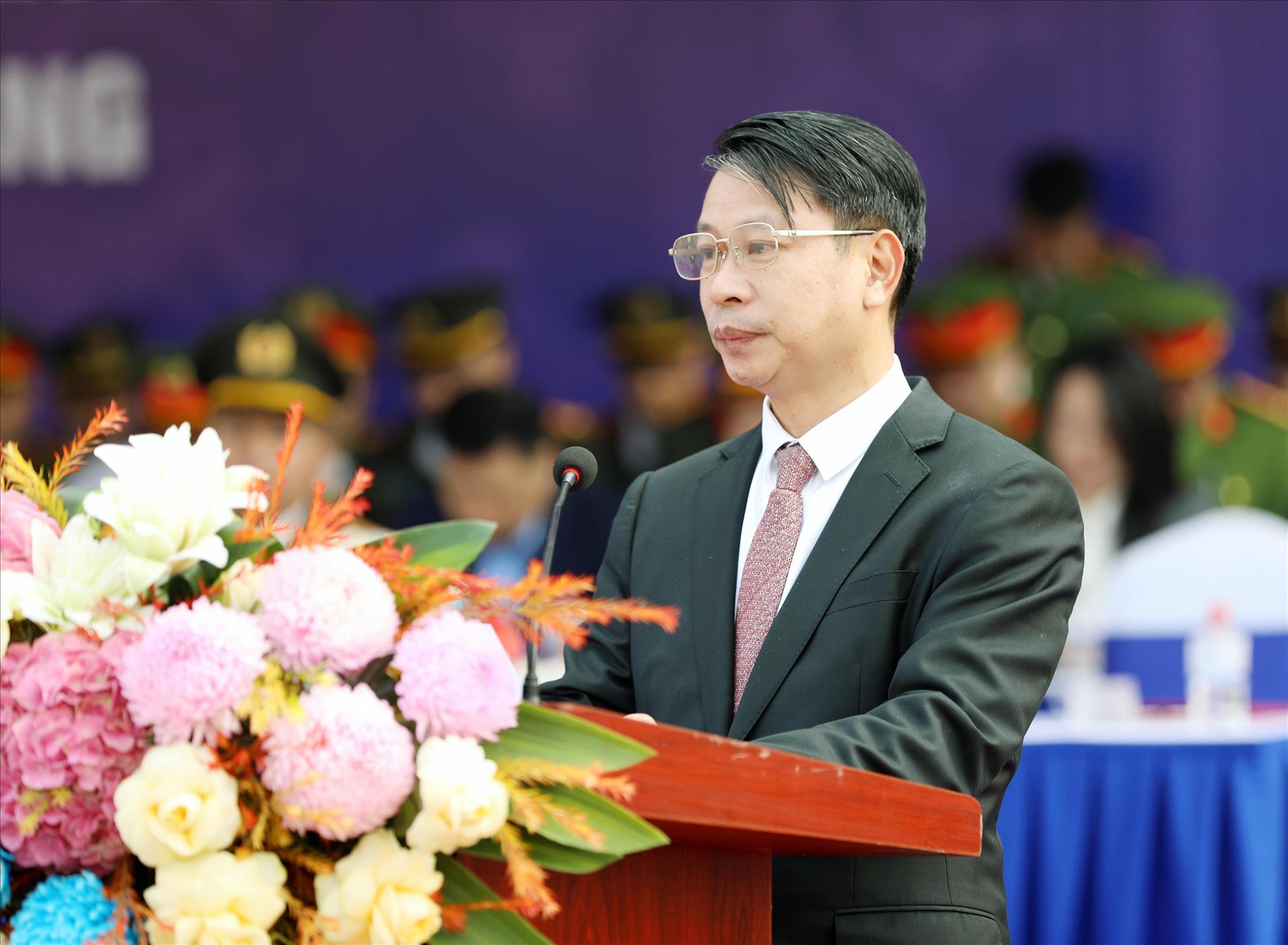 Phó Chủ tịch UBND tỉnh Phú Thọ Nguyễn Khắc Hiếu phát biểu chỉ đạo tại buổi huấn luyện Cảnh sát đặc nhiệm. Ảnh: Tạ Toàn – TTXVN