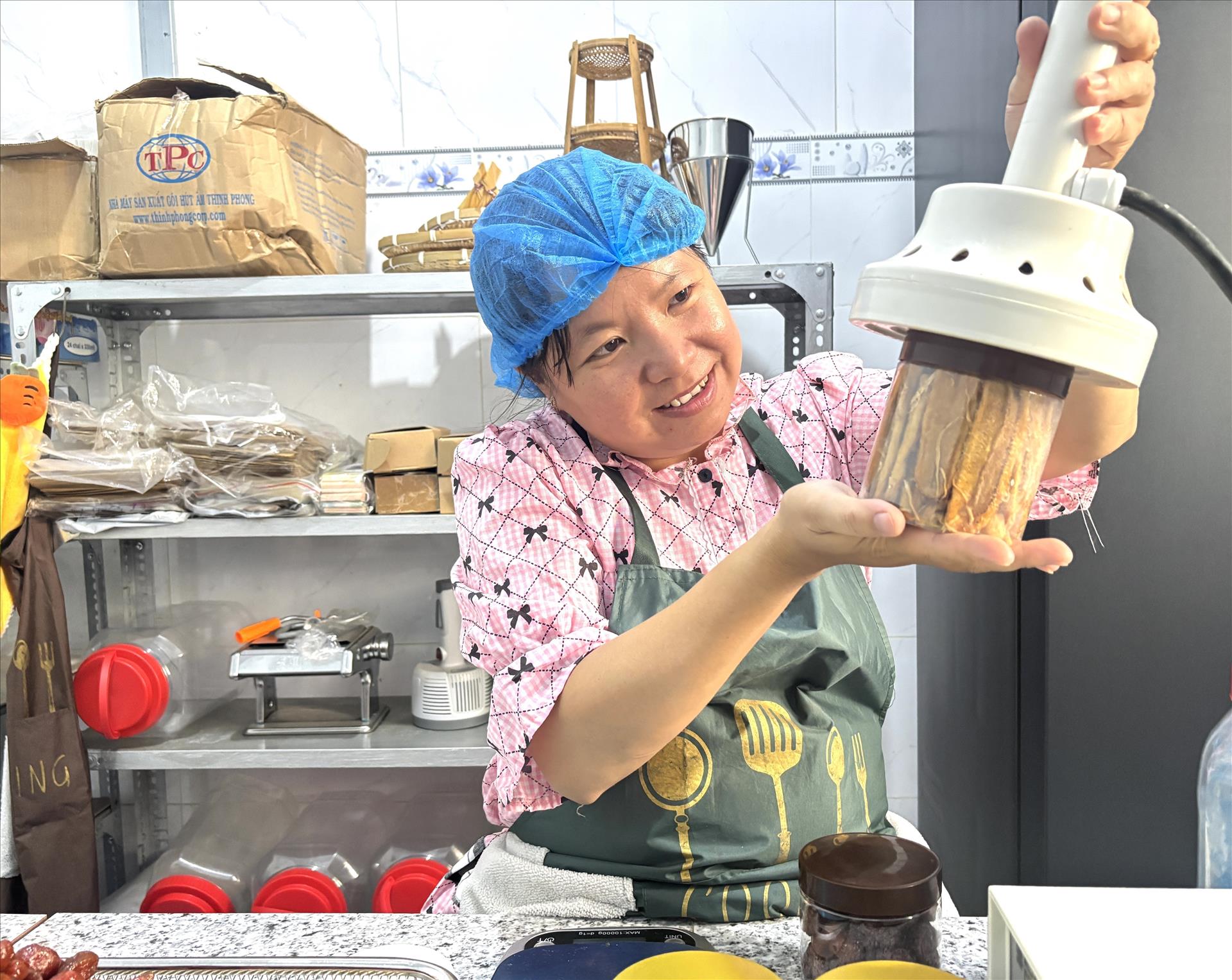 Quy trình chế biến và đóng gói của cơ sở Duy Minh tuân thủ theo tiêu chuẩn an toàn thực phẩm. Ảnh: Hồng Nhung - TTXVN