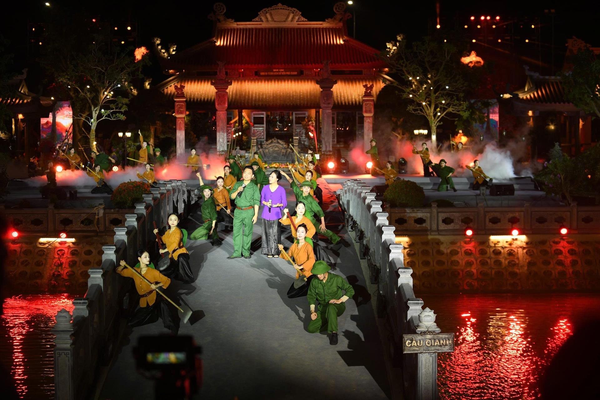 Một tiết mục văn nghệ tại Chương trình nghệ thuật chính luận “Bản hùng ca trên sông”. Ảnh: TTXVN phát