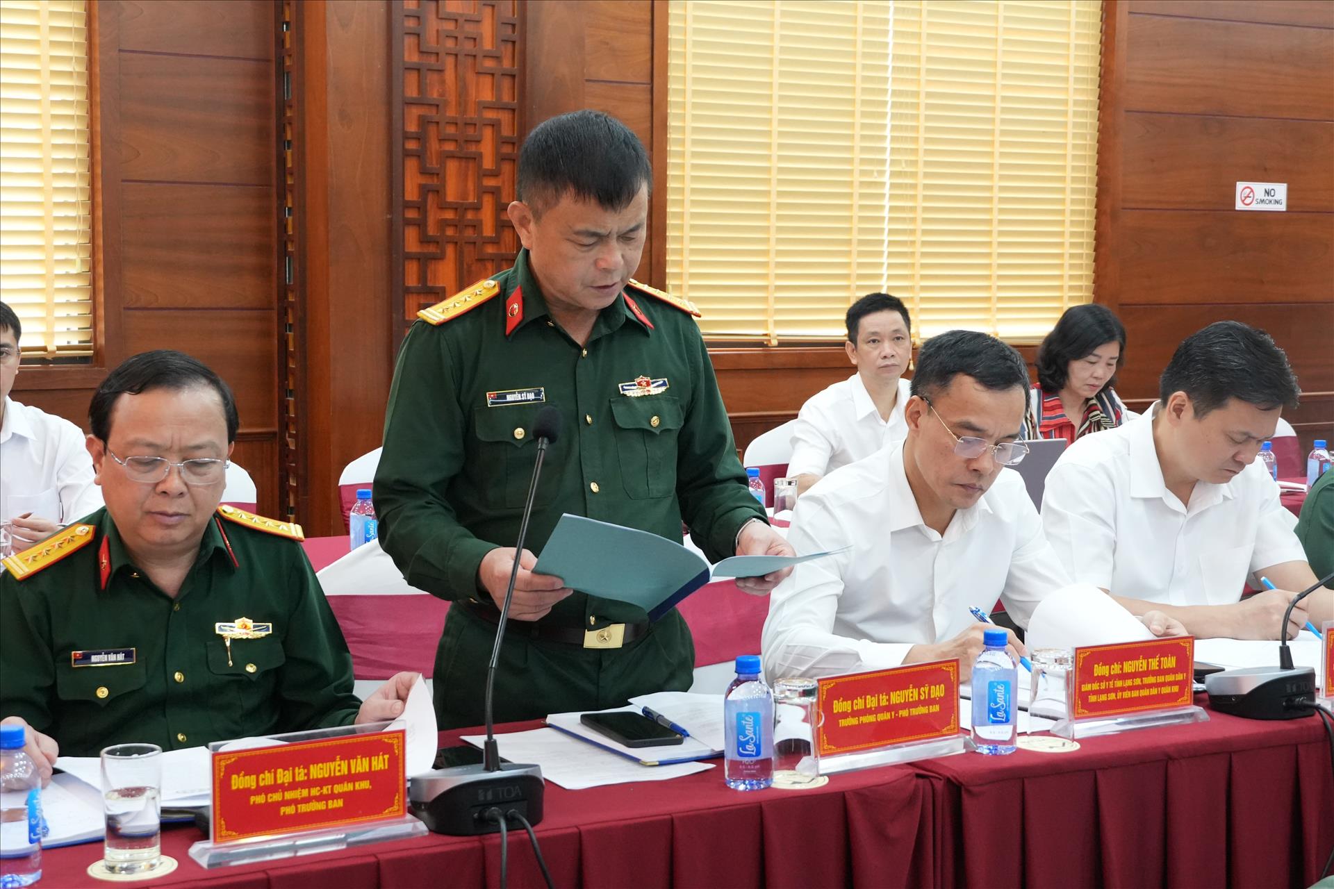 Đại tá Nguyễn Sỹ Đạo, Trưởng phòng Quân y, Quân khu 1 báo cáo với đoàn công tác. Ảnh: Tiến Vĩnh –TTXVN