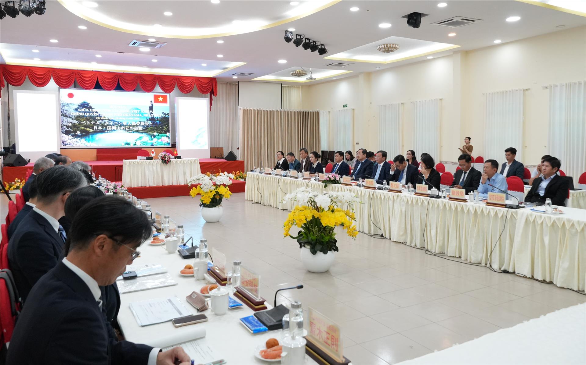 Quang cảnh buổi làm việc giữa chính quyền thành phố Okayama (Nhật Bản) và UBND tỉnh Tây Ninh. Ảnh: Bùi Giang - TTXVN