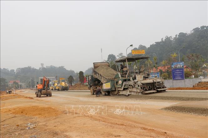 Mũi thi công nền đường Dự án cải tạo, nâng cấp tuyến đường Cách mạng từ xã Tân Trào đến xã Trung Yên (nay là xã Tân Trào), đoạn thôn Tân Lập (Tuyên Quang). Ảnh: Hoàng Hải - TTXVN