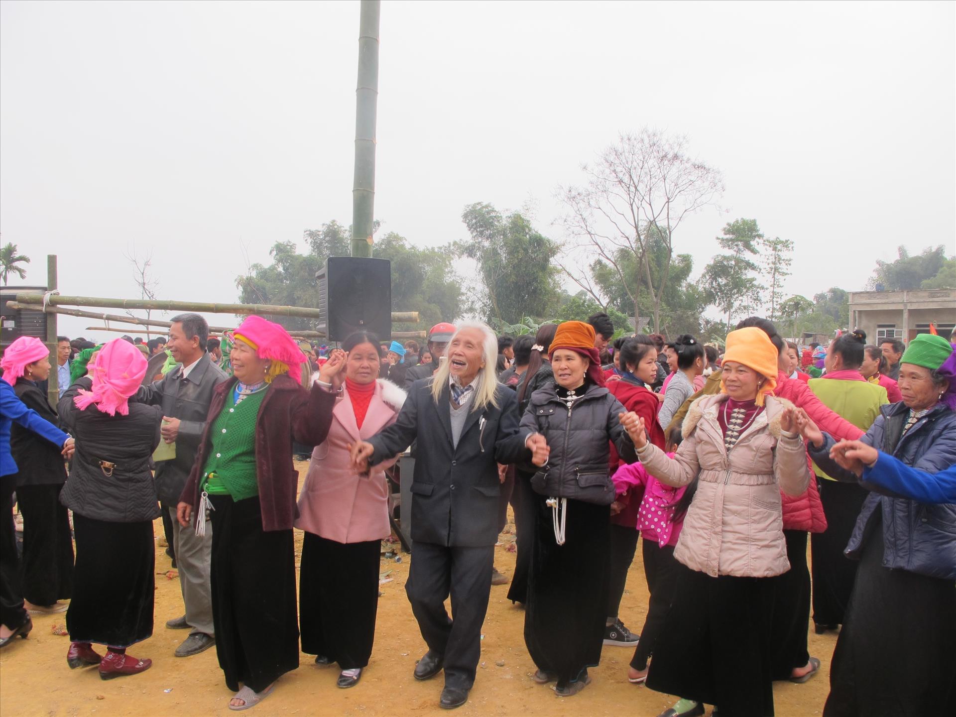 Nam thanh nữ tú người Thái tìm hiểu nhau trên sàn Hạn khuống qua những lời hát giao duyên xốn xang tình tứ. Ảnh: Việt Dũng - TTXVN