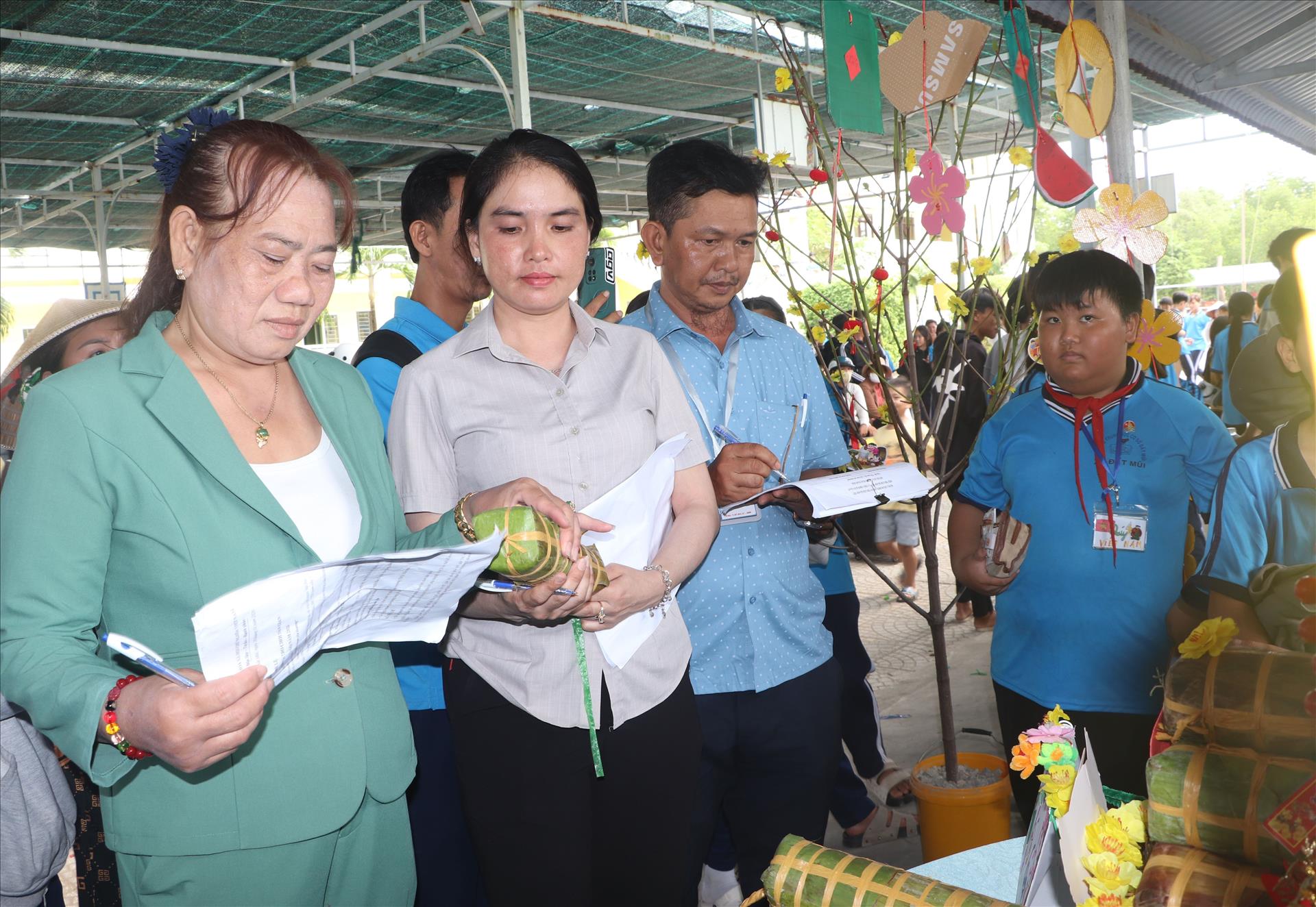 Ban giám hiệu Trường THCS Đất Mũi tổ chức hội thi gói bánh Tét, tạo điều kiện cho các thầy cô ở lại vui xuân đón Tết. Ảnh: Tuấn Phi - TTXVN