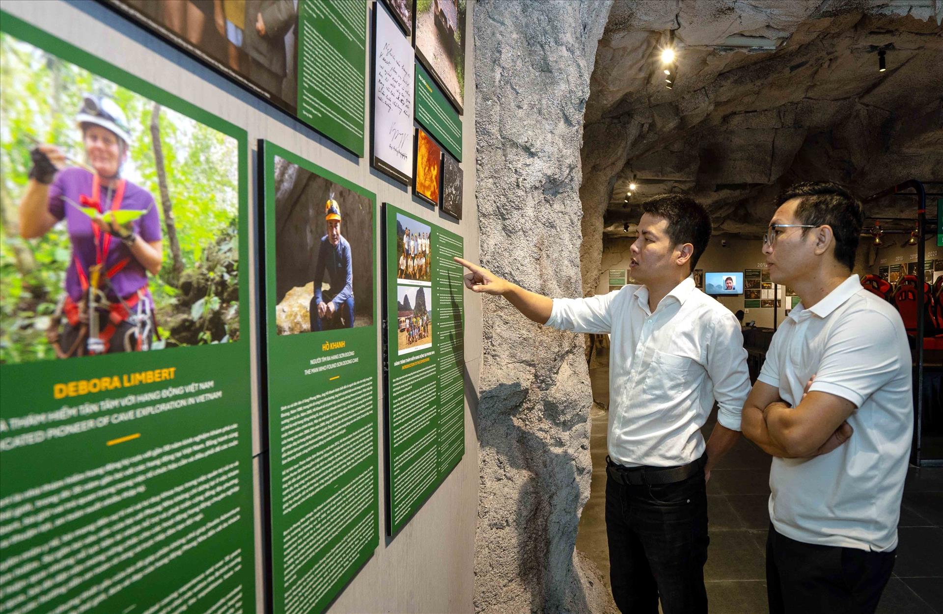 Khu trưng bày tại Trung tâm Thông tin Thám hiểm Hang động Phong Nha tái hiện hành trình hơn ba thập kỷ khám phá lòng đất thông qua hệ thống tư liệu hình ảnh, phim tài liệu, thiết bị thám hiểm và các bản đồ hang động được vẽ tay chi tiết. Bên cạnh đó, việc ứng dụng công nghệ hiện đại giúp người tham quan có thể cảm nhận rõ nét vẻ đẹp của các khối thạch nhũ, quy mô của những hang động lớn cũng như hệ thống sông ngầm kỳ bí.
